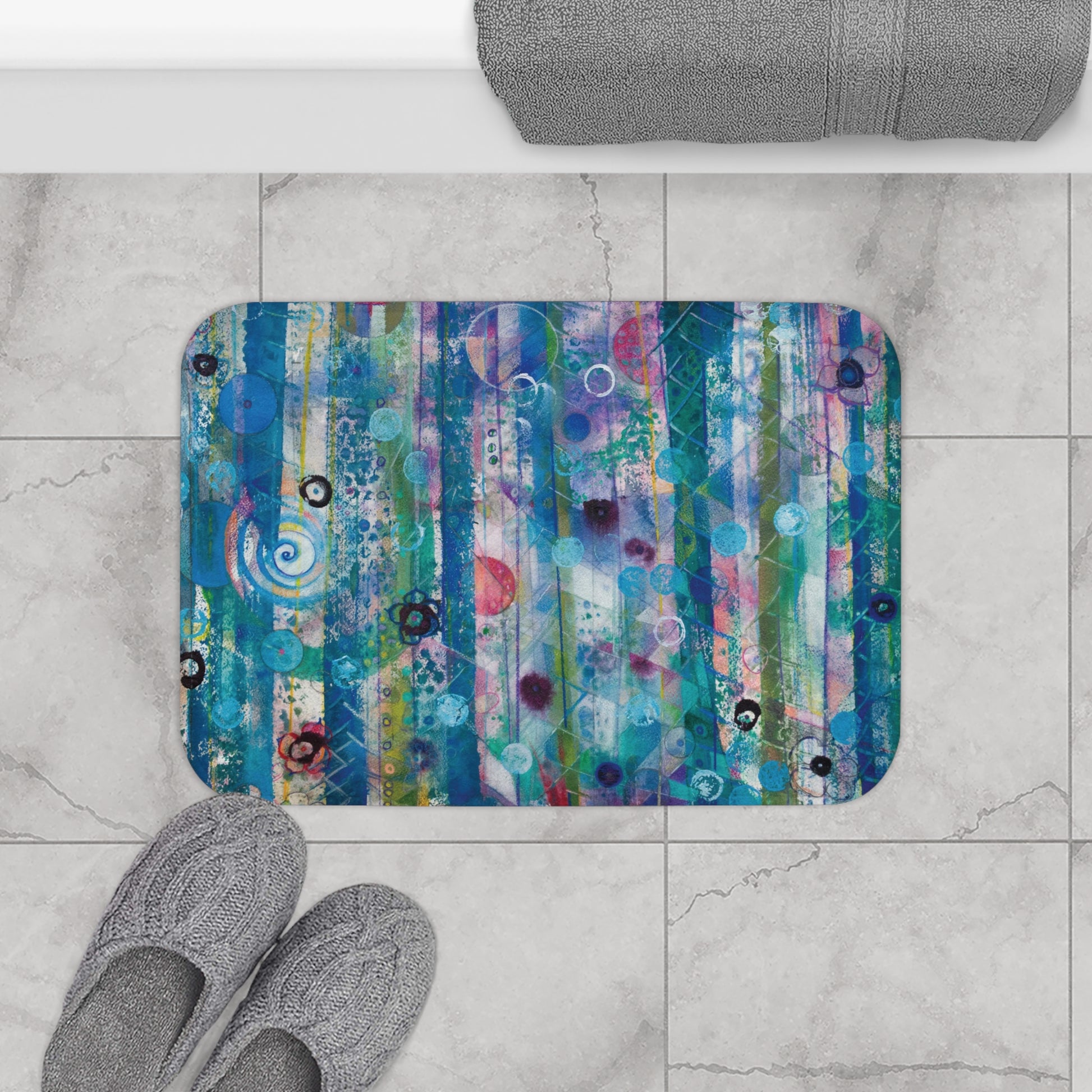 Leslie Karpinski's Dreaming Trees original art printed on a non slip memory foam bath mat. It's available in 2 sizes.