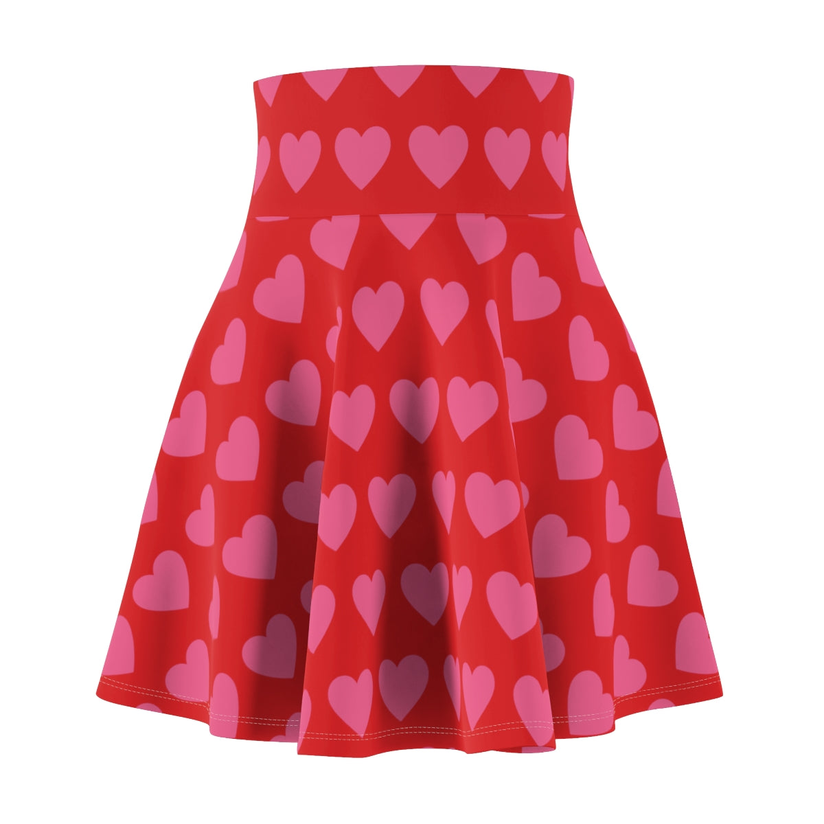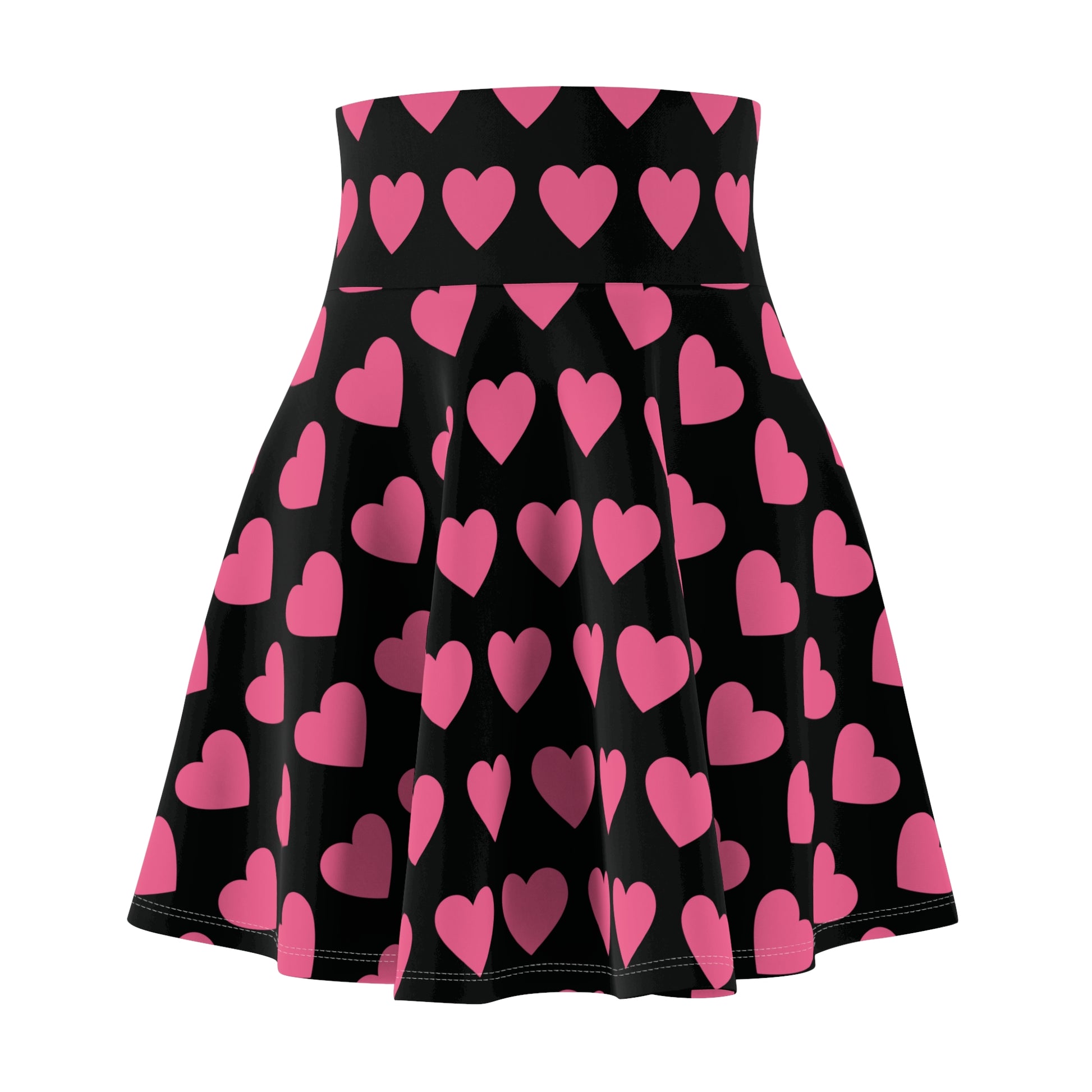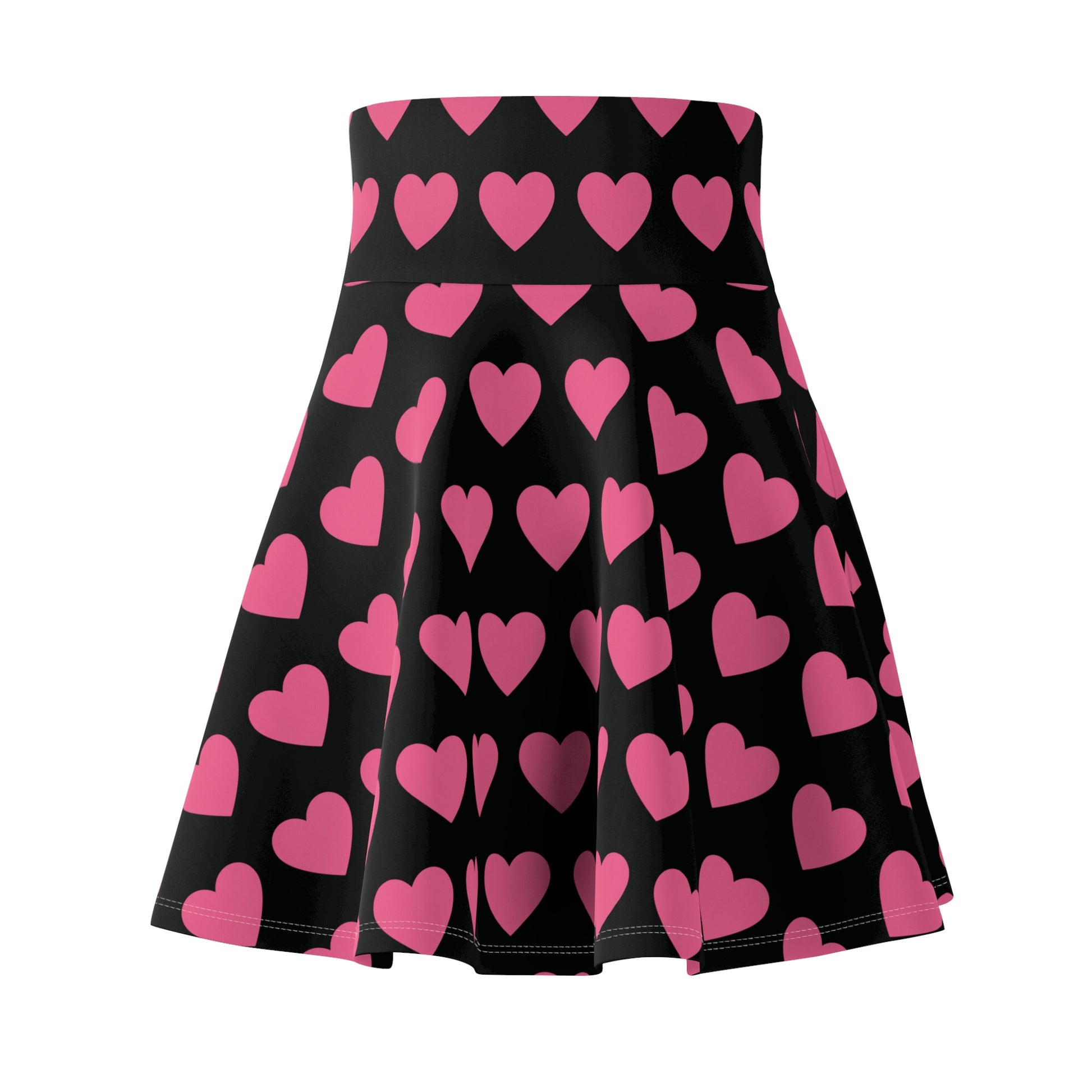 Black Pink Heart Black Womens Flare Skater Skirt - Saiko Studio