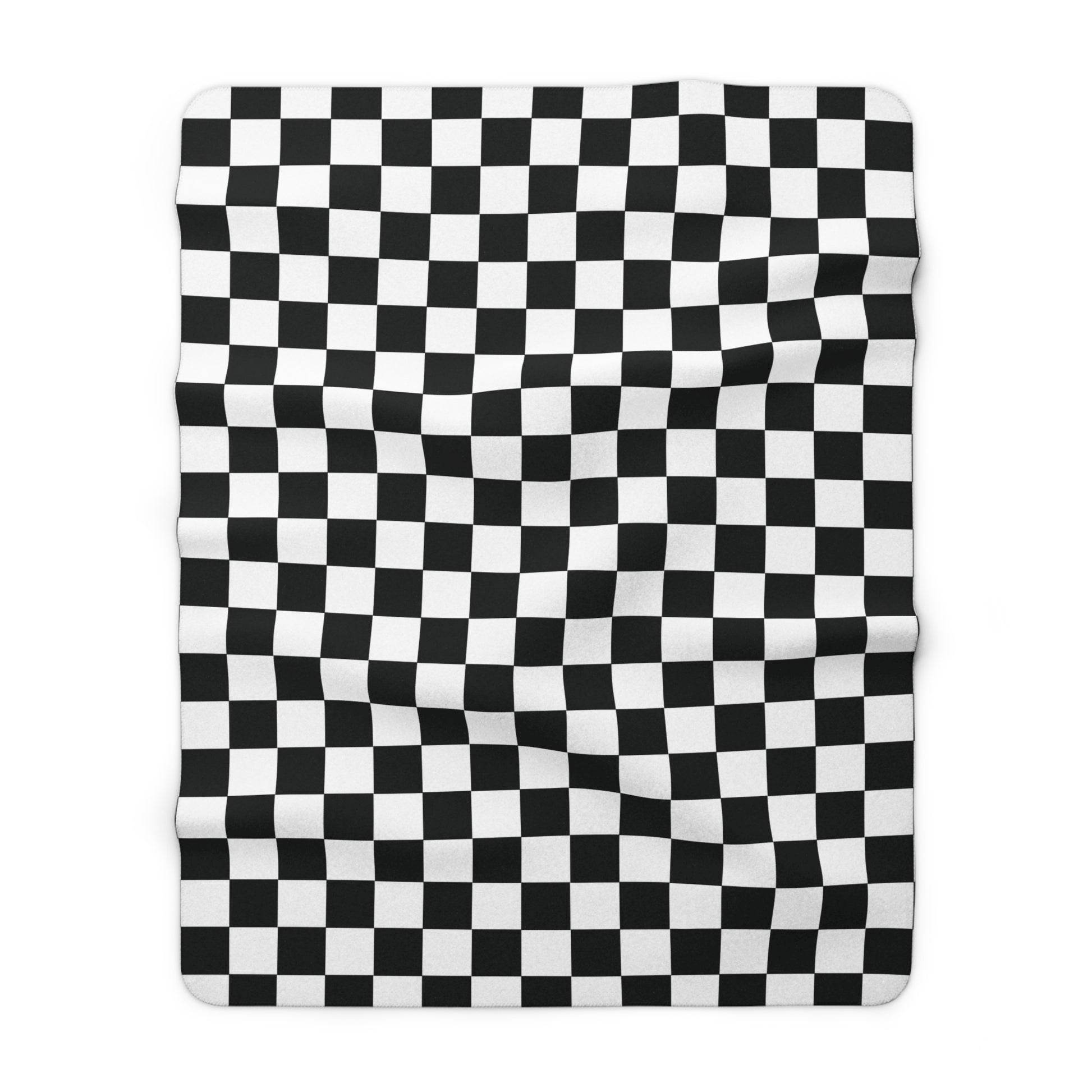 Black White Checkerboard Sherpa Fleece Blanket - Saiko Studio