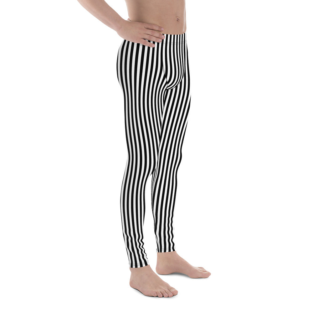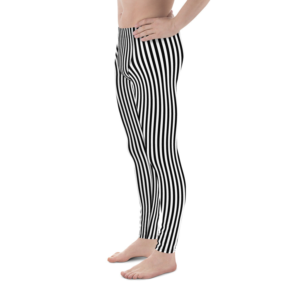 Black White Vertical Stripe Mens Leggings Yoga Stretch Pants - Saiko Studio