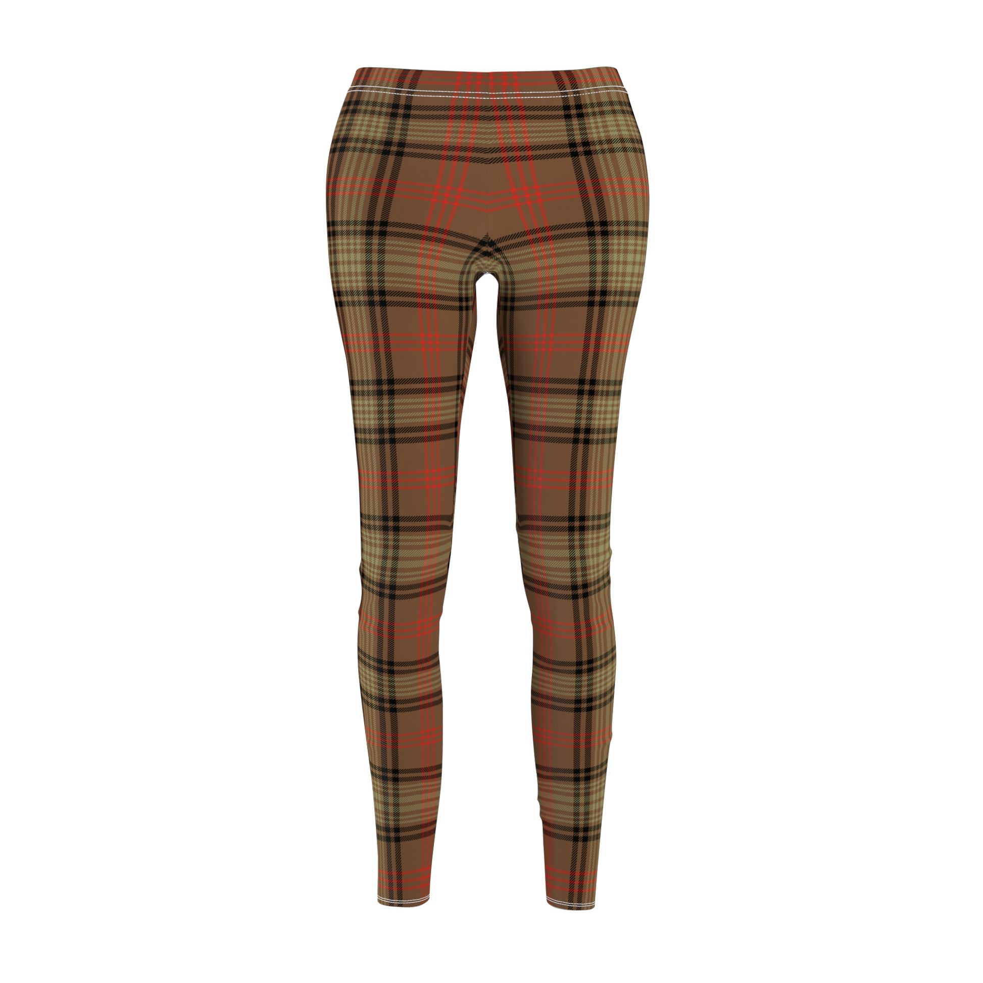 Brown Orange Plaid Tartan Legging Stretch Pants - Saiko Studio