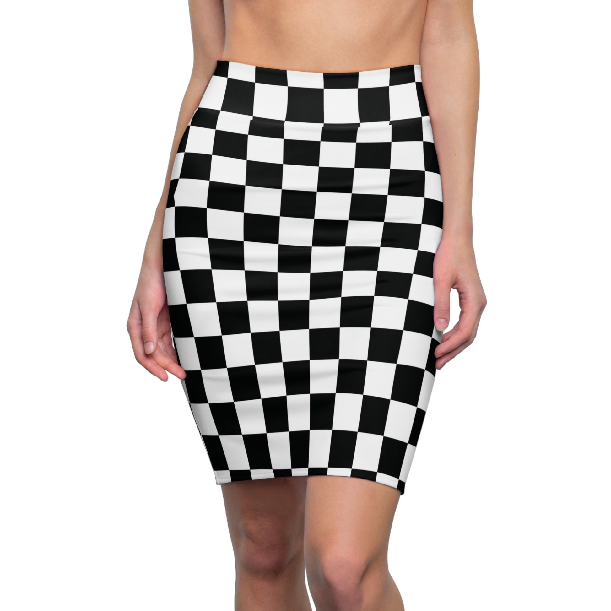 Our black and white checkerboard pattern womens pencil skirt is comfortable and soft. More colors are available.