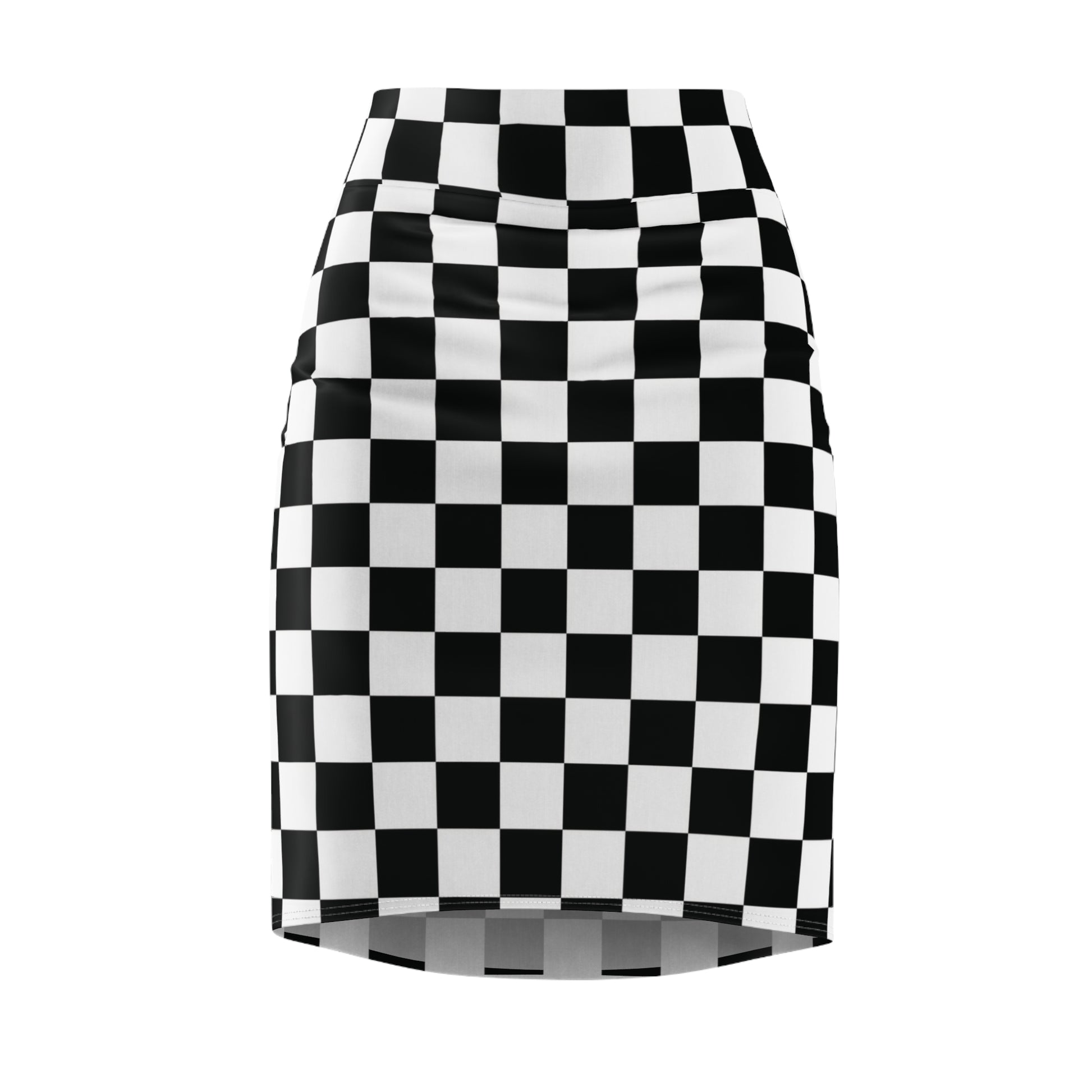 Black White Checkerboard Womens Pencil Skirt - Saiko Studio