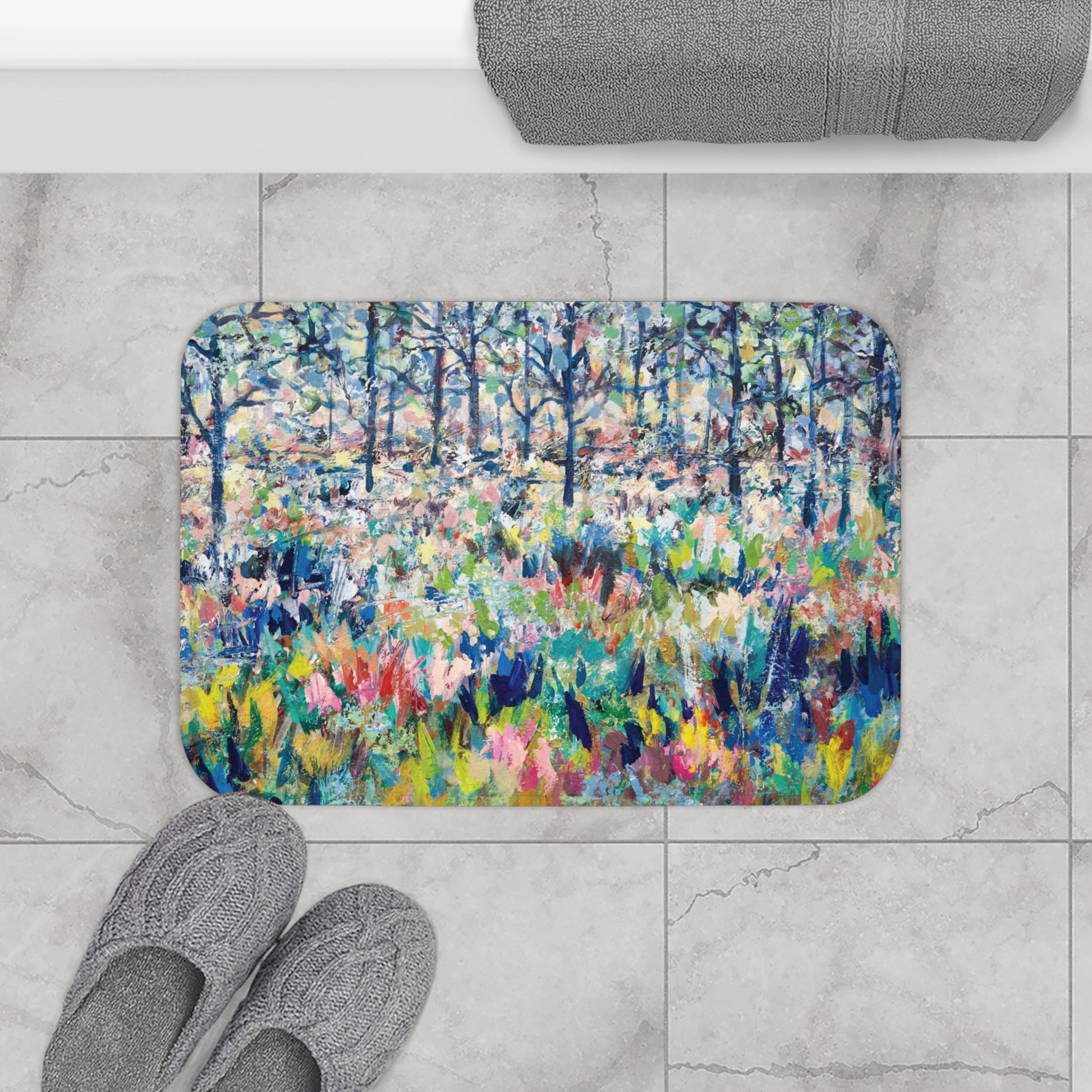 Leslie Karpinski's Healing From The Storm original art printed on a non slip memory foam bath mat. It's available in 2 sizes.