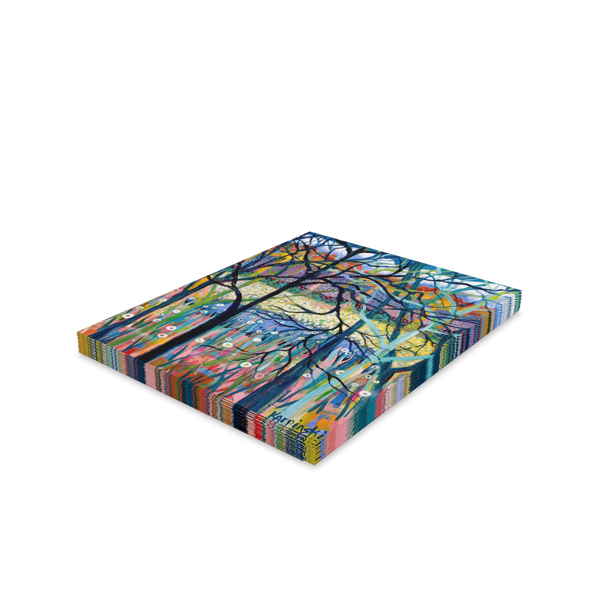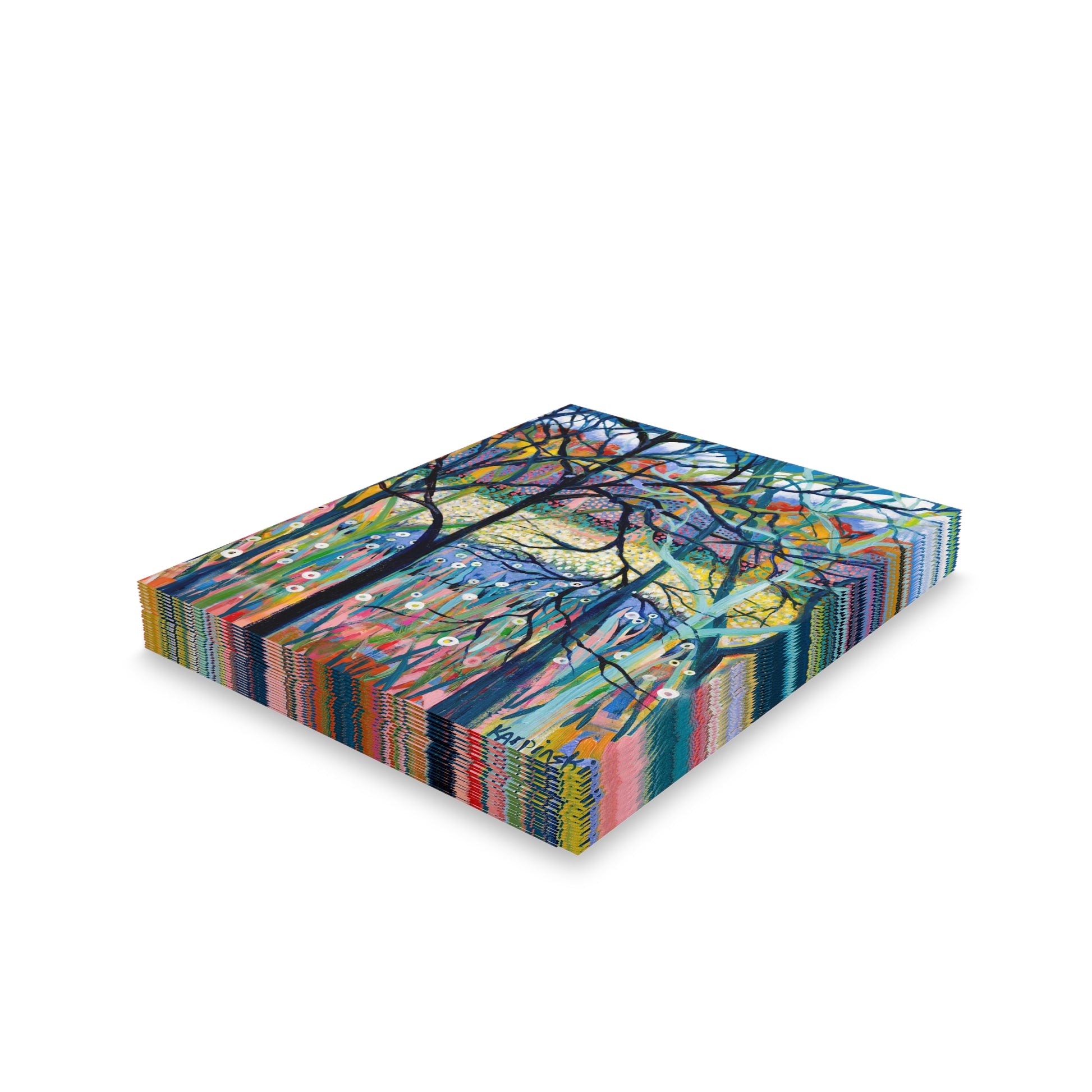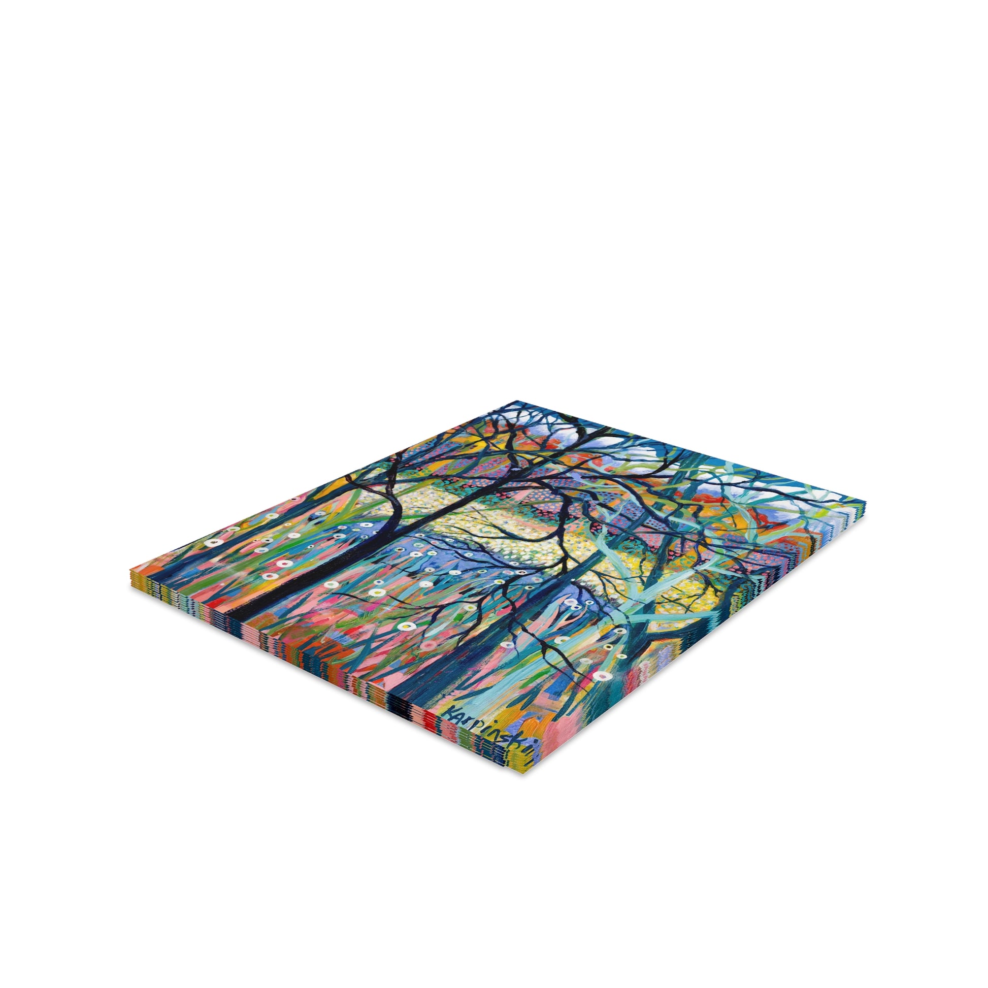 A multi pack of greeting cards with Leslie Karpinkski's original painting "Stillness". We have 8, 16 and 24 packs. The cards measure 4.25" x 5.5". Each greeting card come with a white envelope.