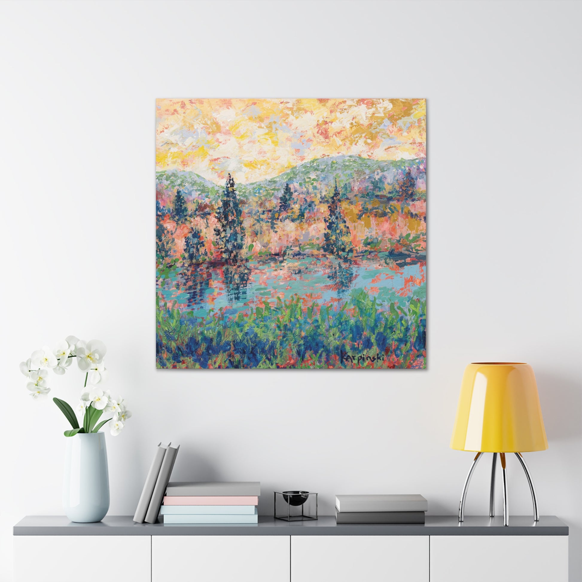Colorful Wall Artwork Nature Painting Canvas Print Landscape Art - River People by Leslie Karpinski
