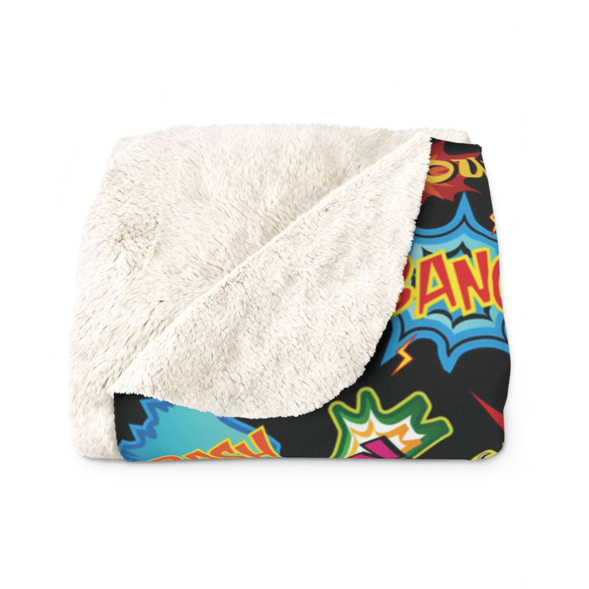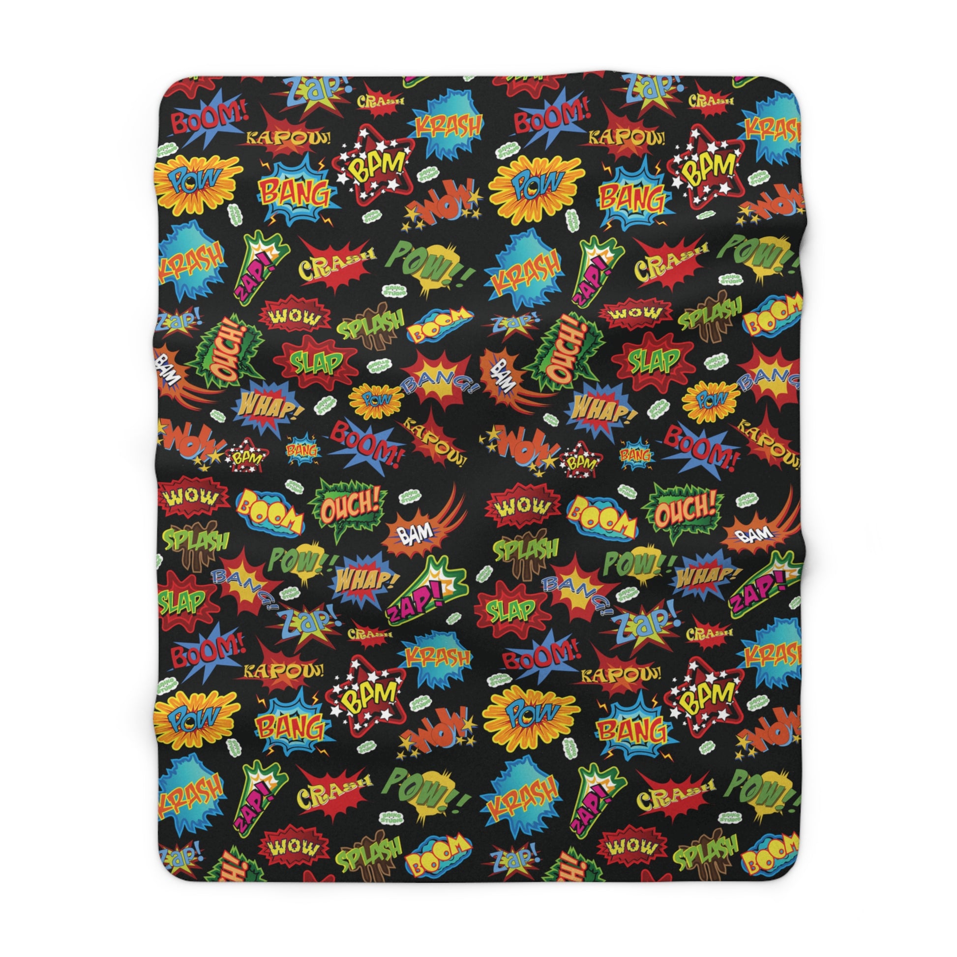 Comic Book Action Words Sherpa Fleece Blanket - Saiko Studio