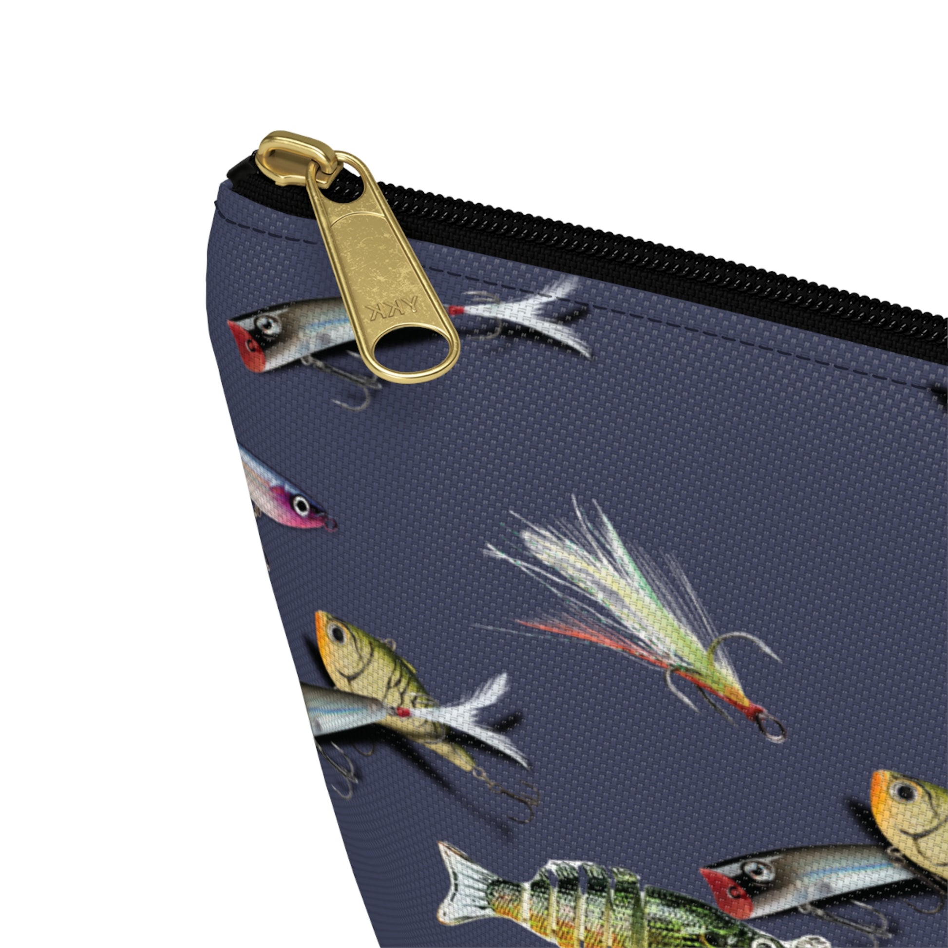 Our fishing lure pencil case with white or black zipper. We have two sizes, please check the photos for the size chart.