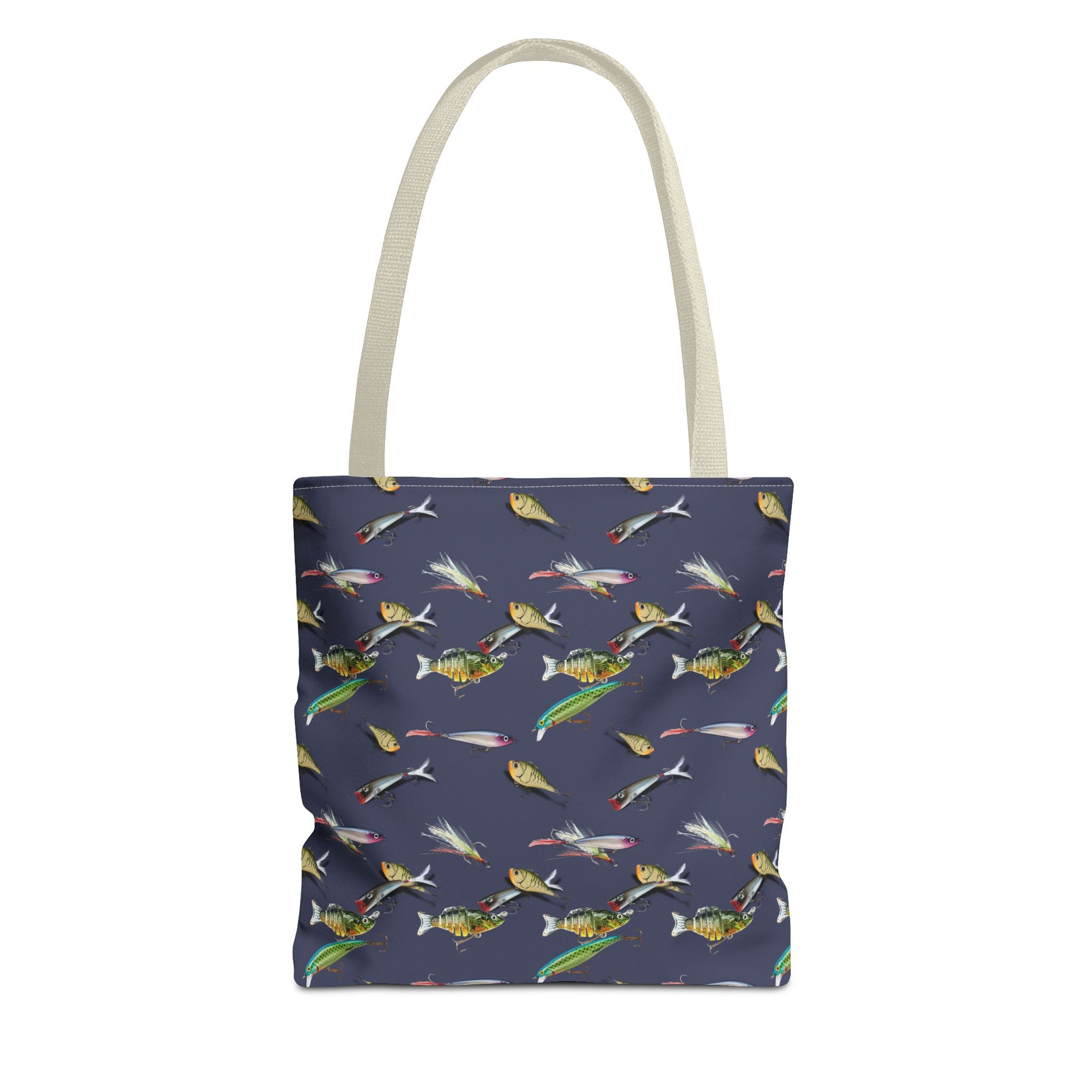 Fishing Lure Fish Print Canvas Tote Bag Reusable Shopping Bag - Saiko Studio
