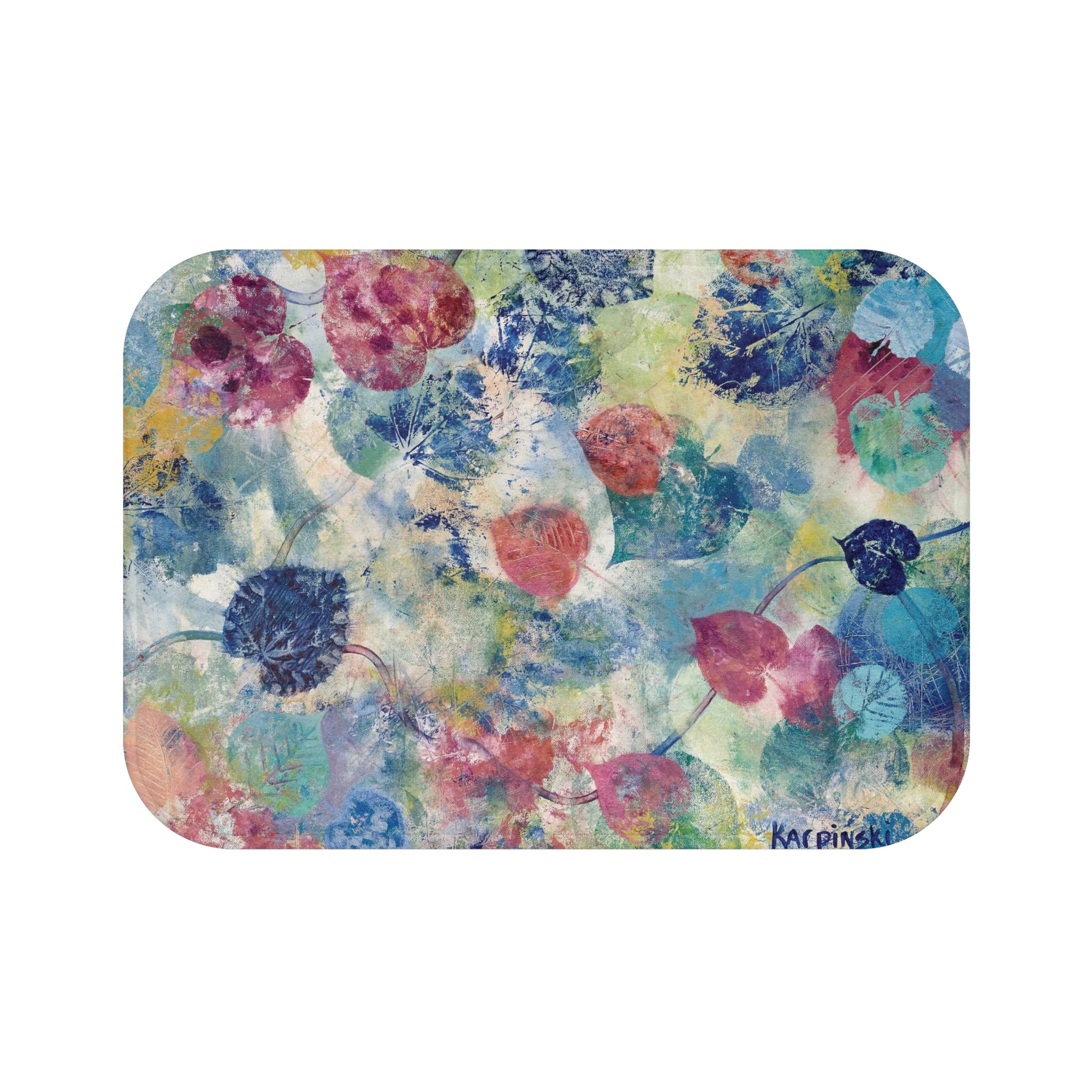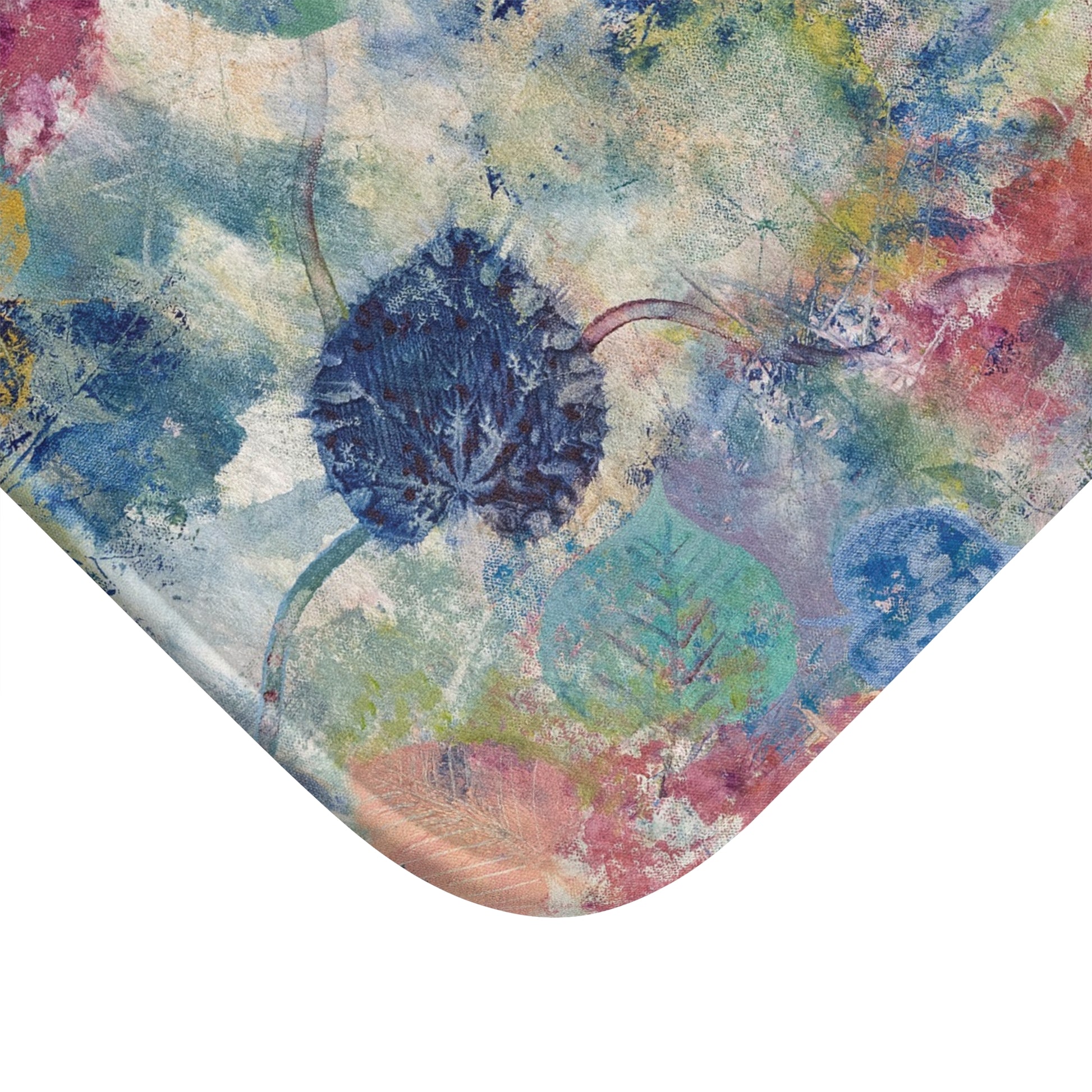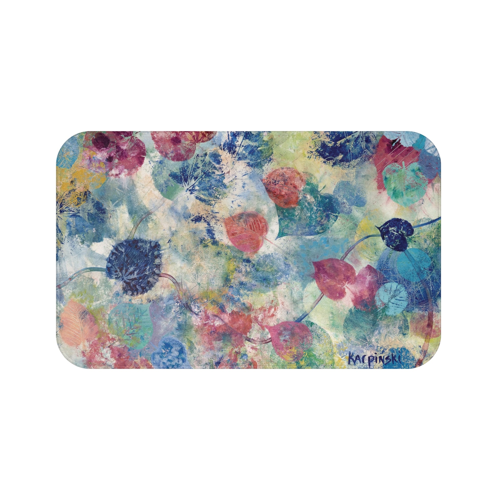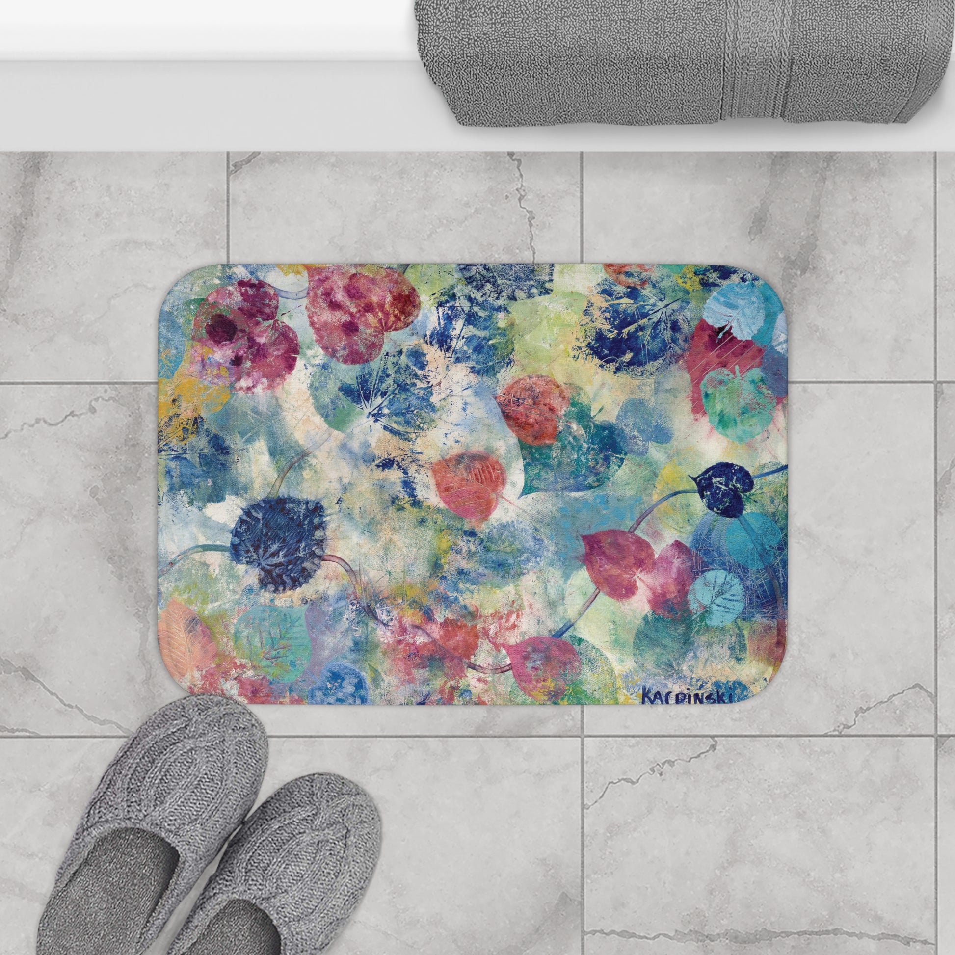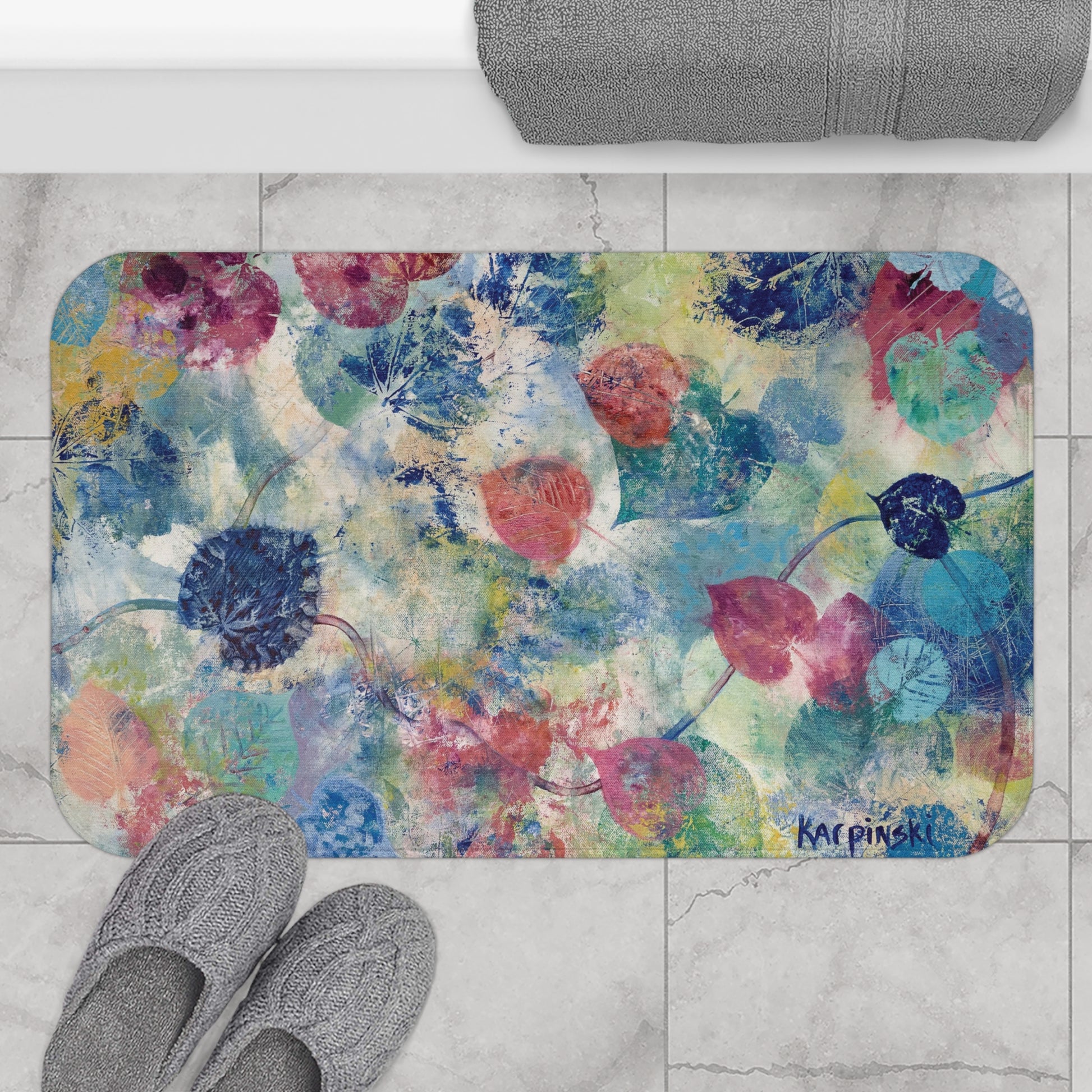 Leslie Karpinski's Red Bud original art printed on a non slip memory foam bath mat. It's available in 2 sizes.