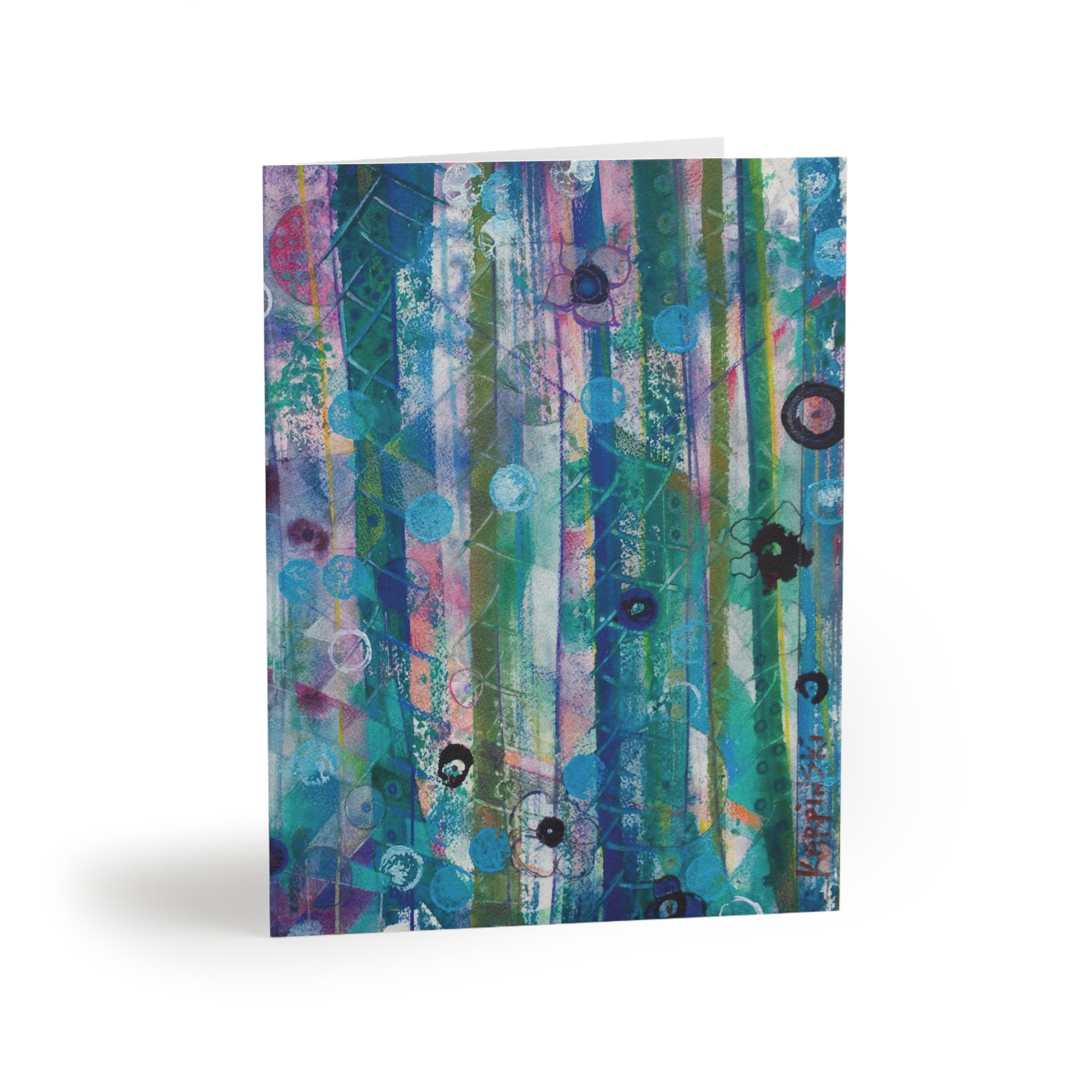 A multi pack of greeting cards with Leslie Karpinski's original painting "Celestial Sky". We have 8, 16 and 24 packs. The cards measure 4.25" x 5.5". Each greeting card come with a white envelope.