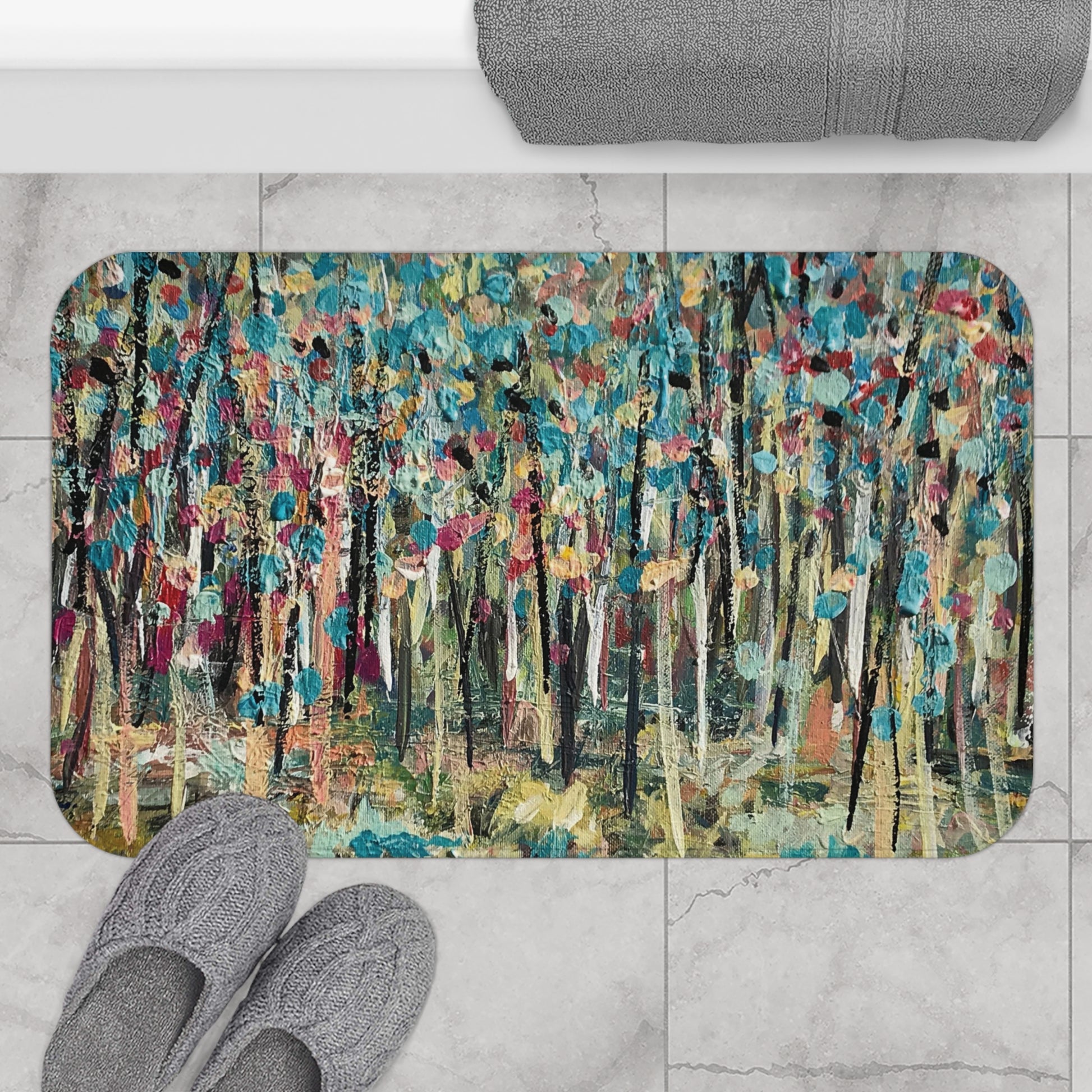 Landscape Artwork Forest Memory Foam Non Slip Bath Mat - Colorful Landscape by Leslie Karpinski