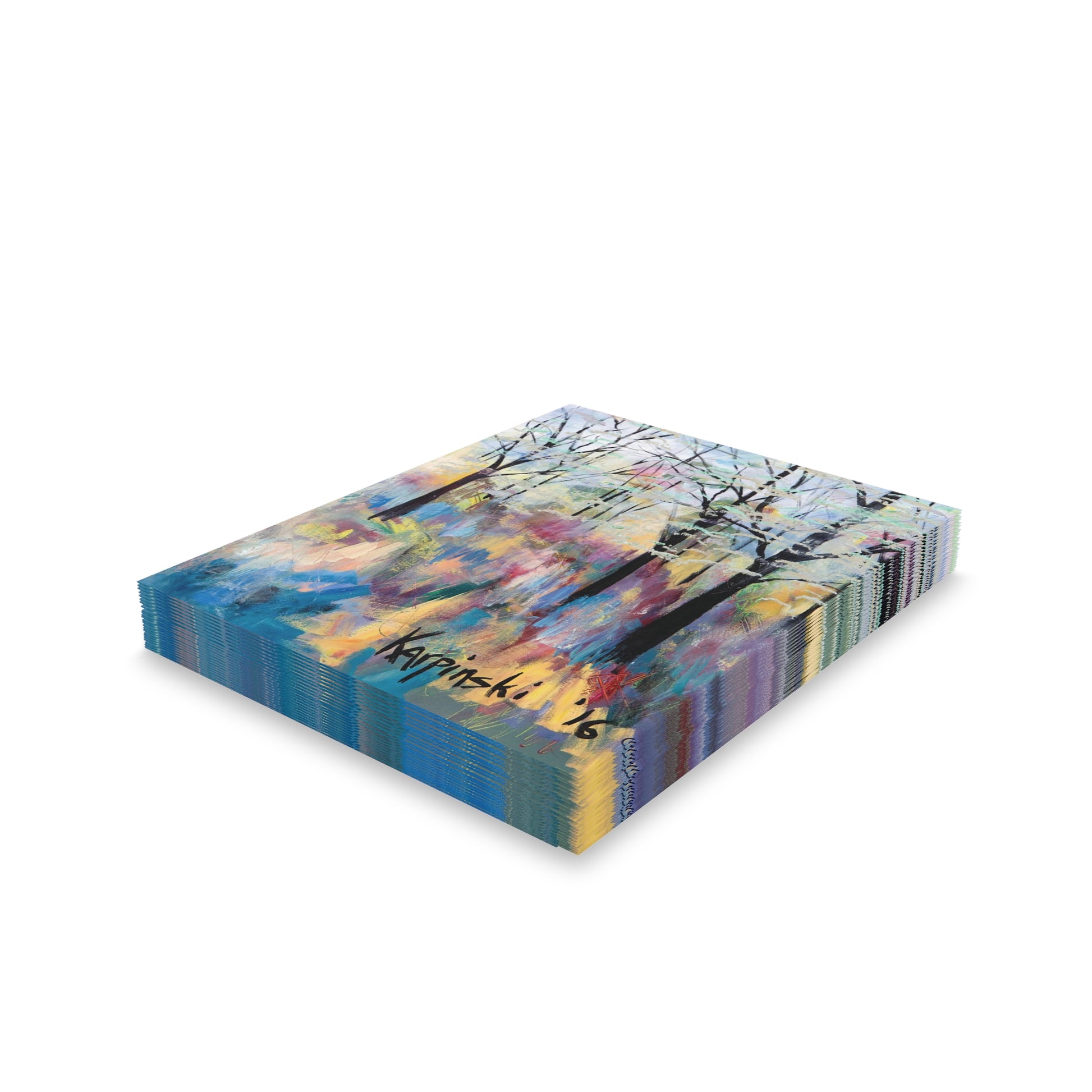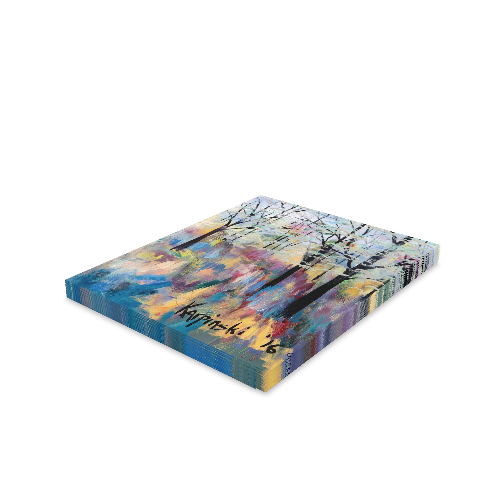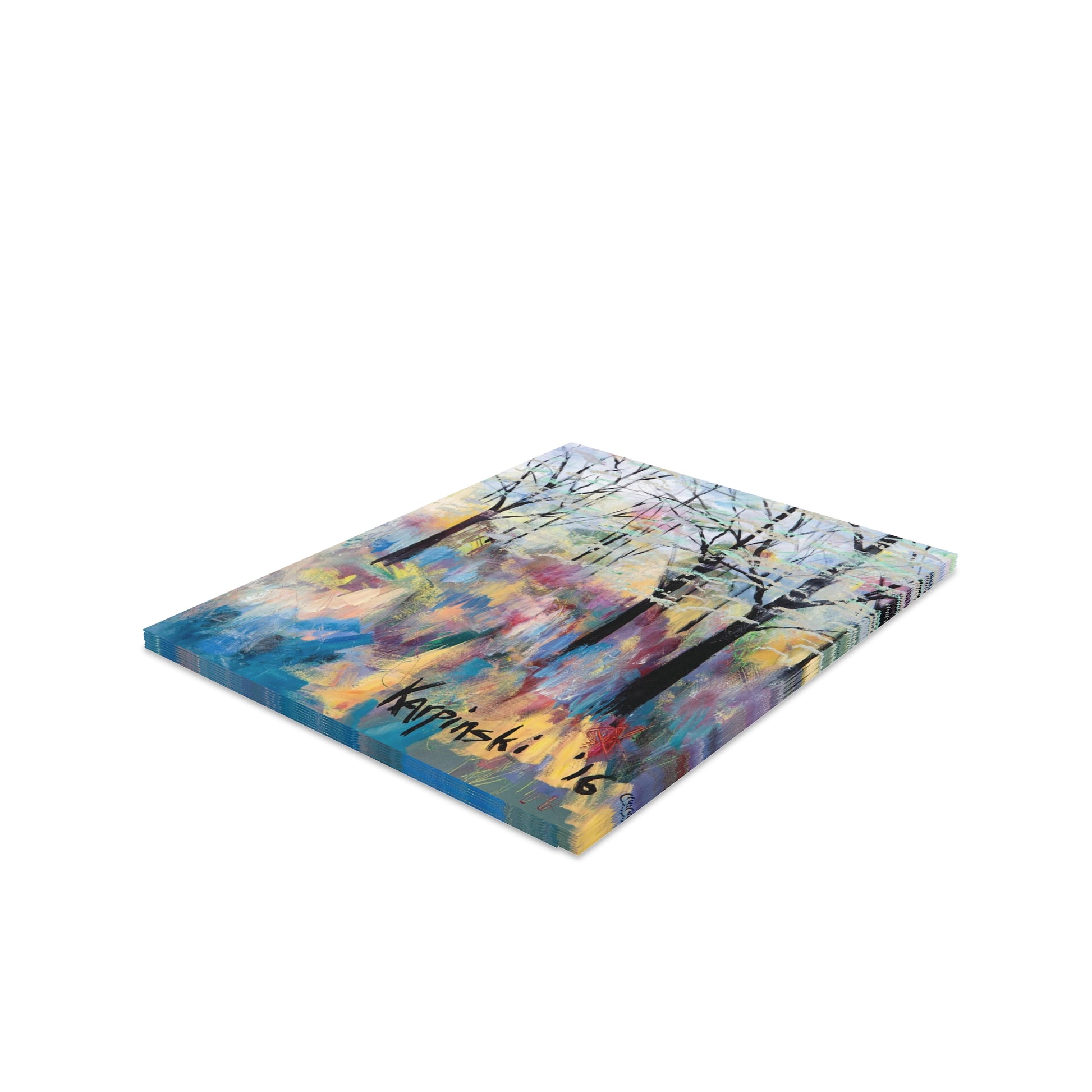 A multi pack of greeting cards with Leslie Karpinski's original painting "Blue Ridge Parkway". We have 8, 16 and 24 packs. The cards measure 4.25" x 5.5". Each greeting card come with a white envelope.
