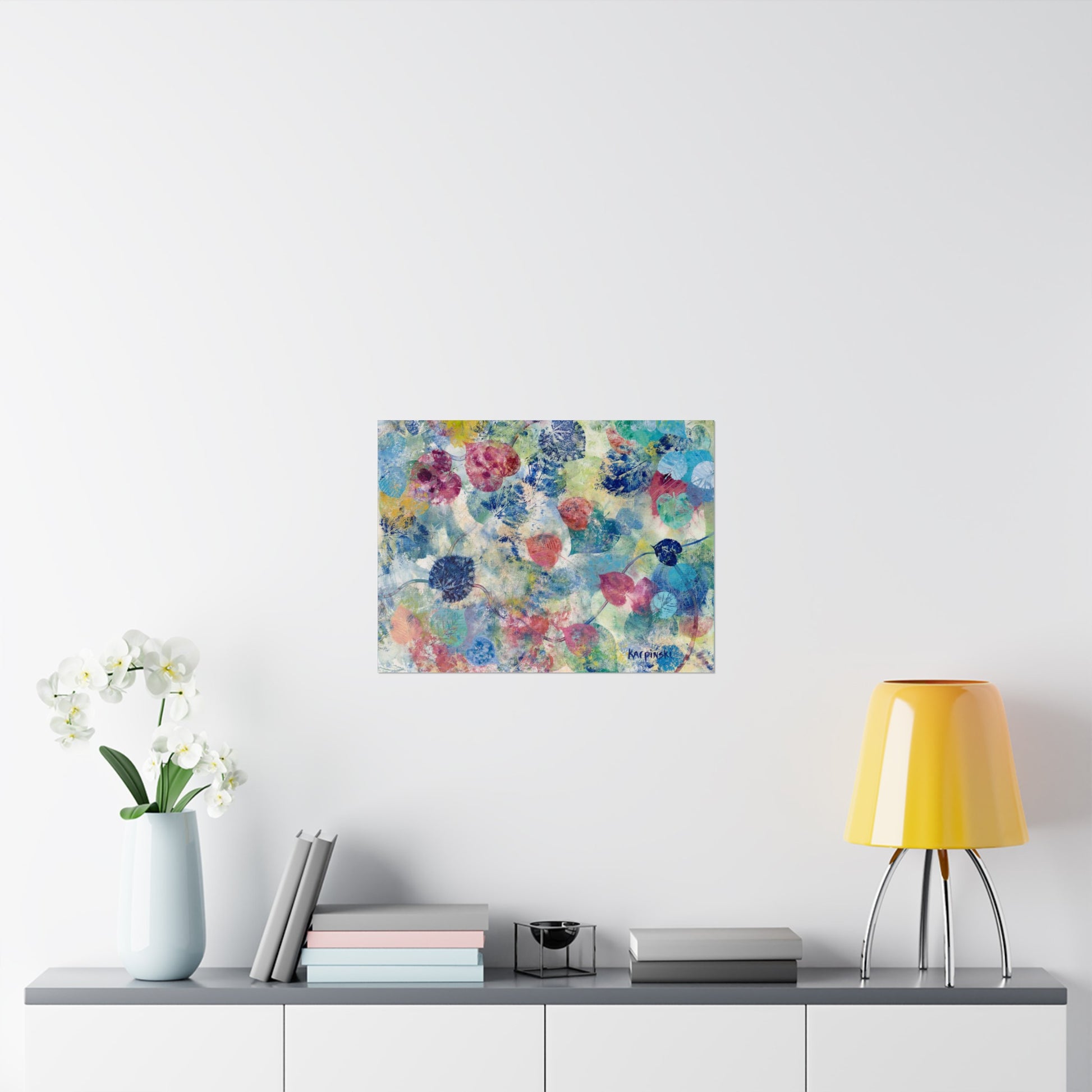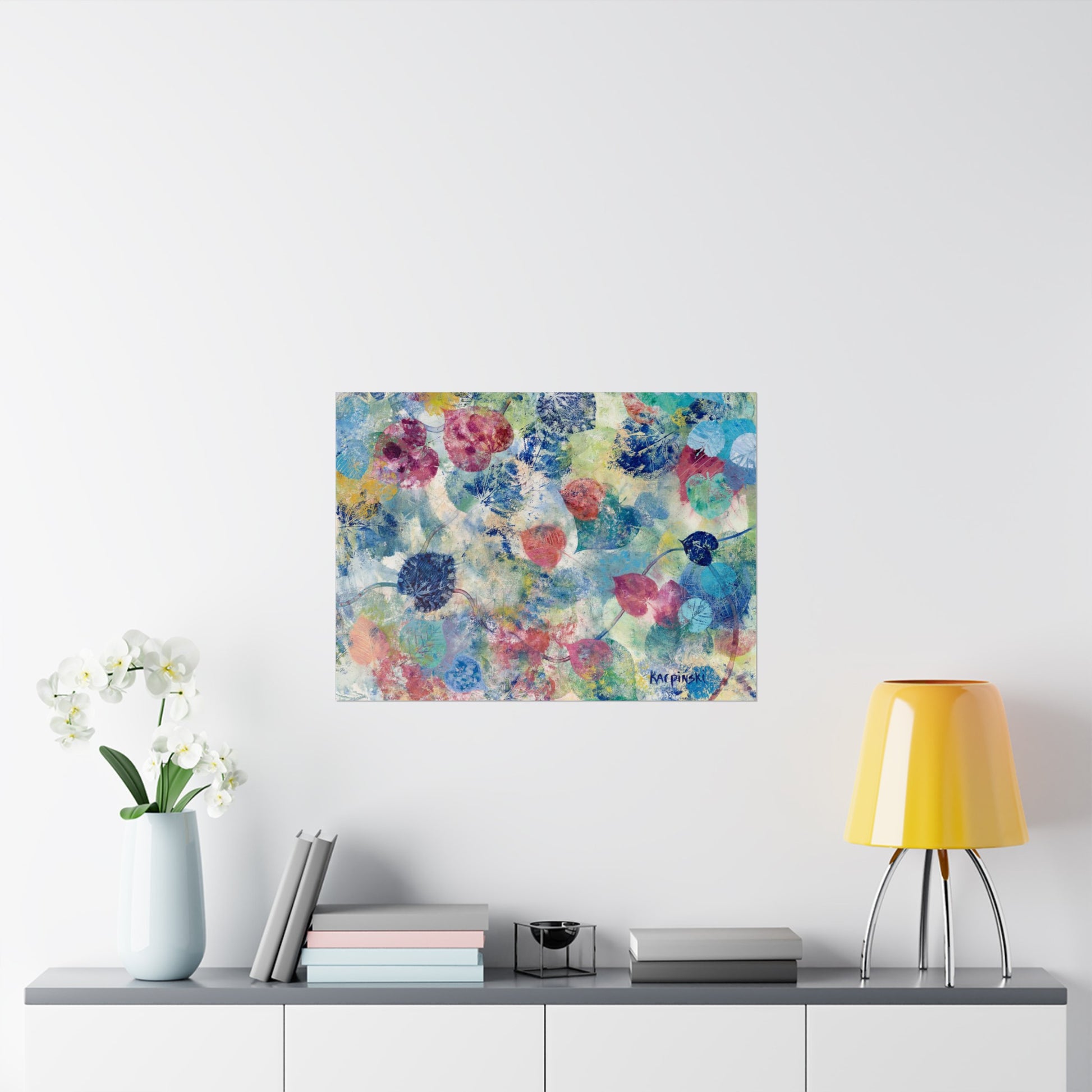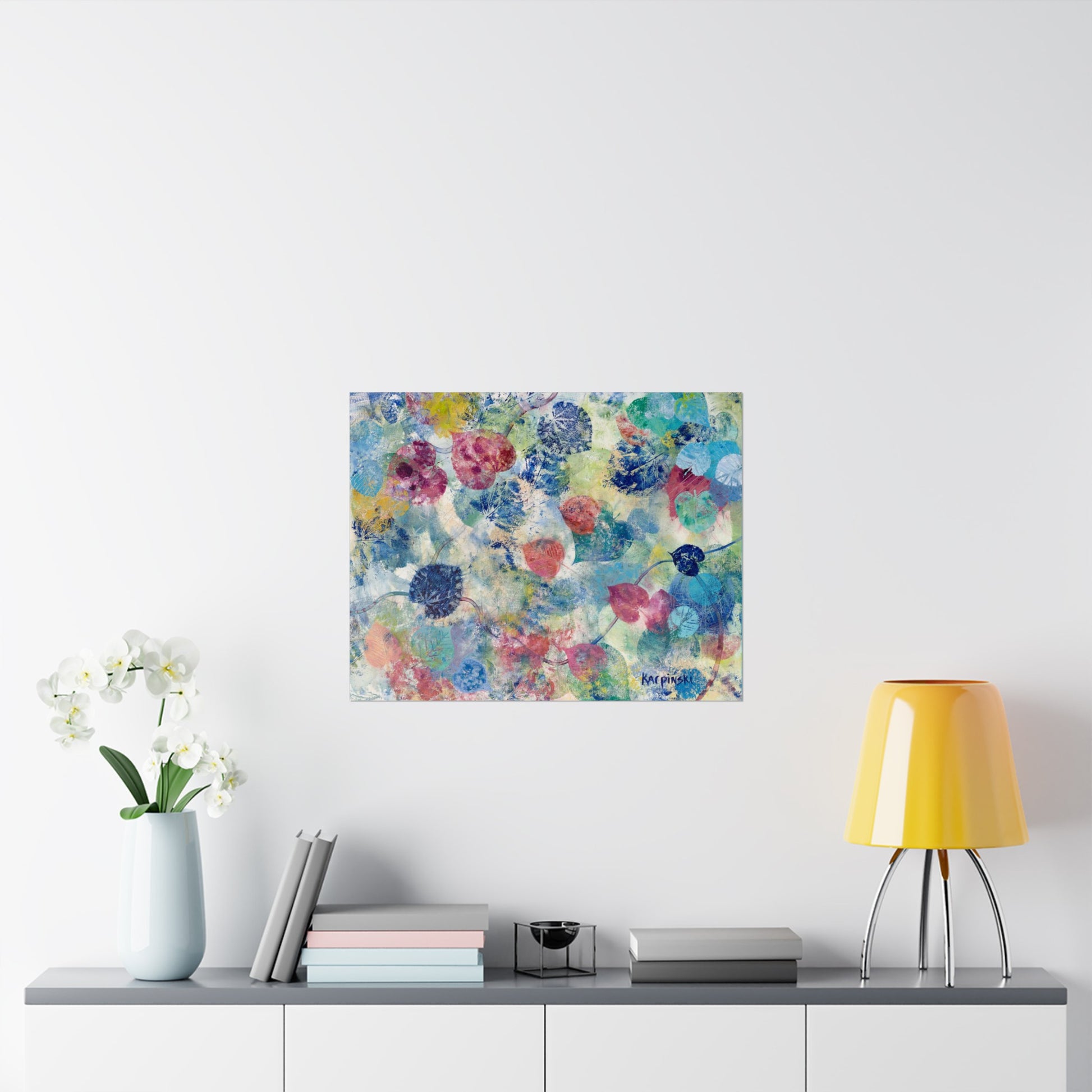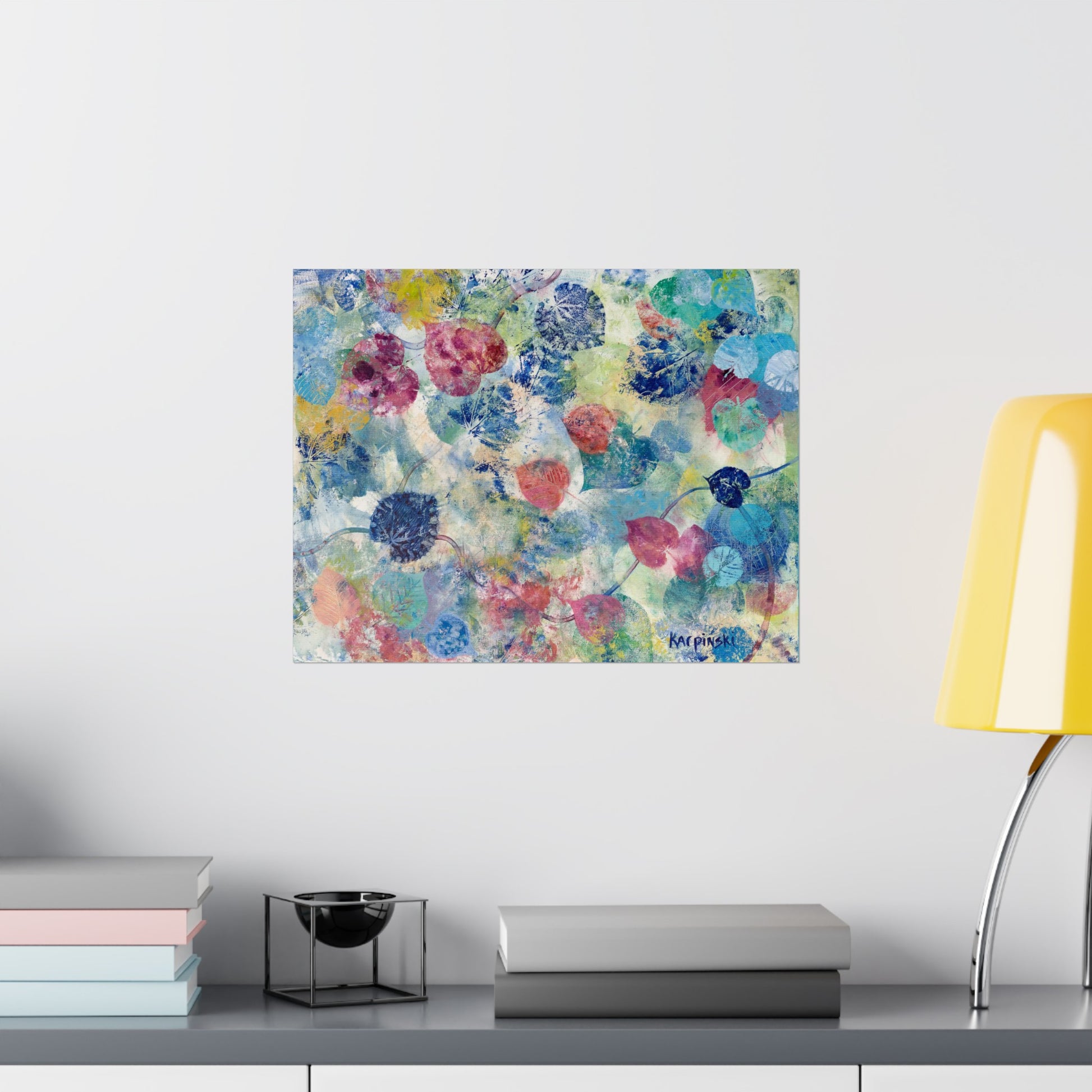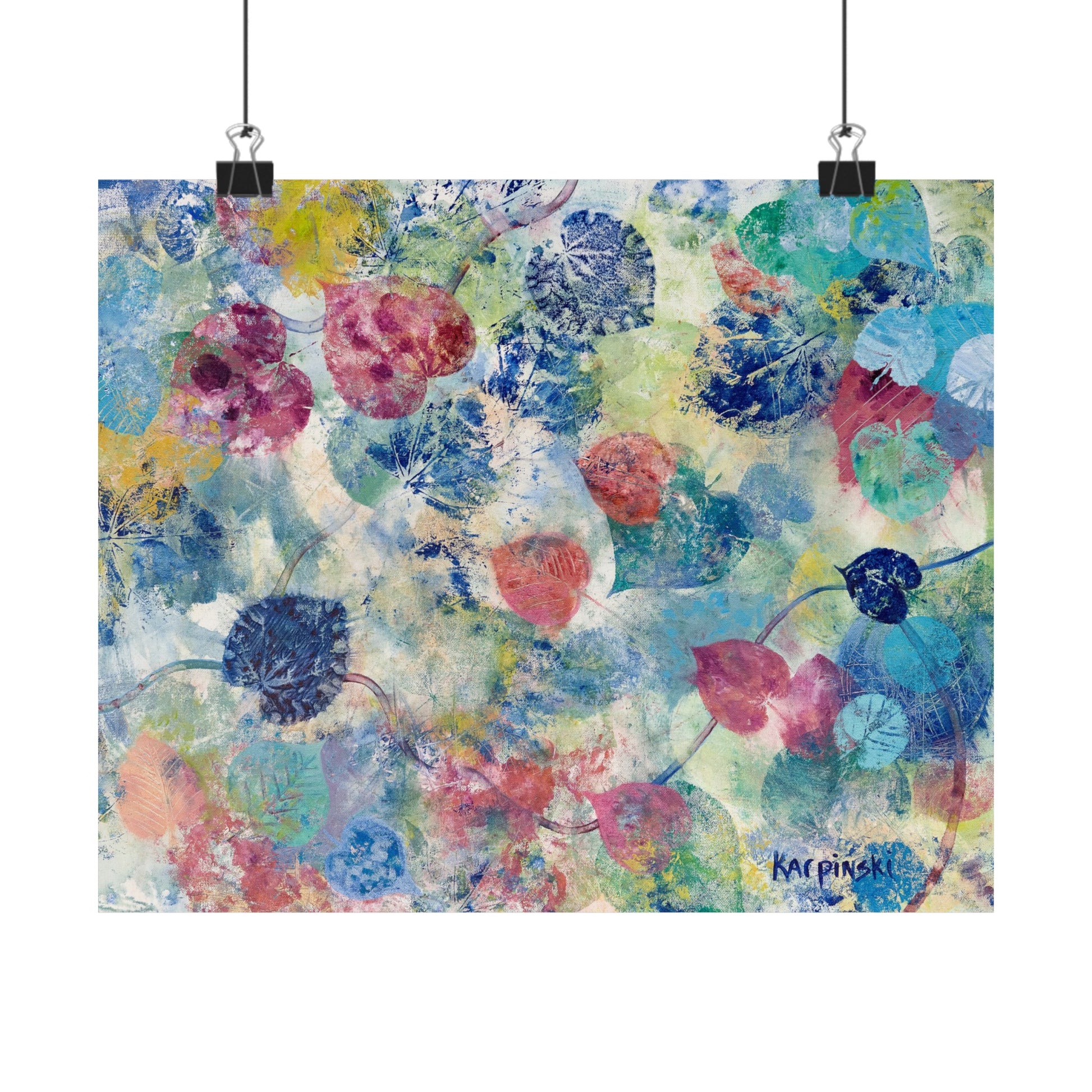 A stunning multi color painting by Leslie Karpinski featuring leaves of many different colors. Explore this magical painting every day with a poster print ready for framing!