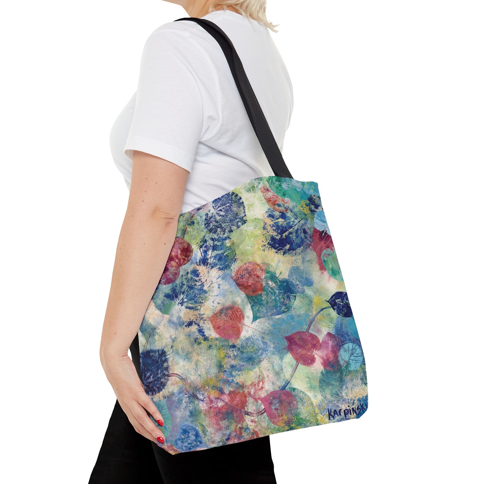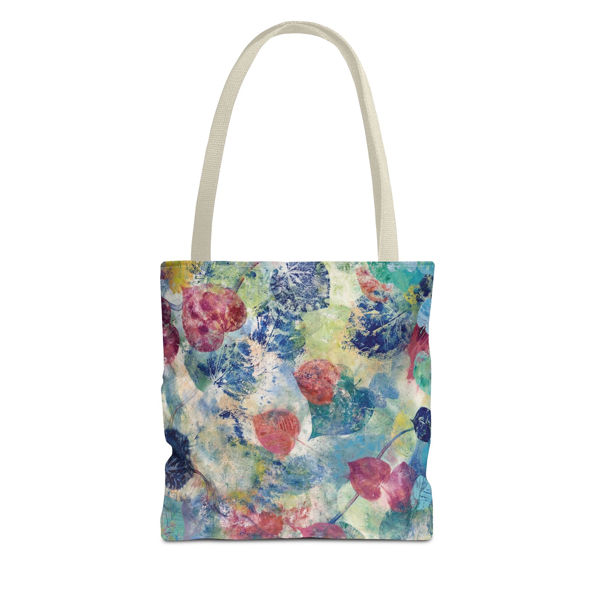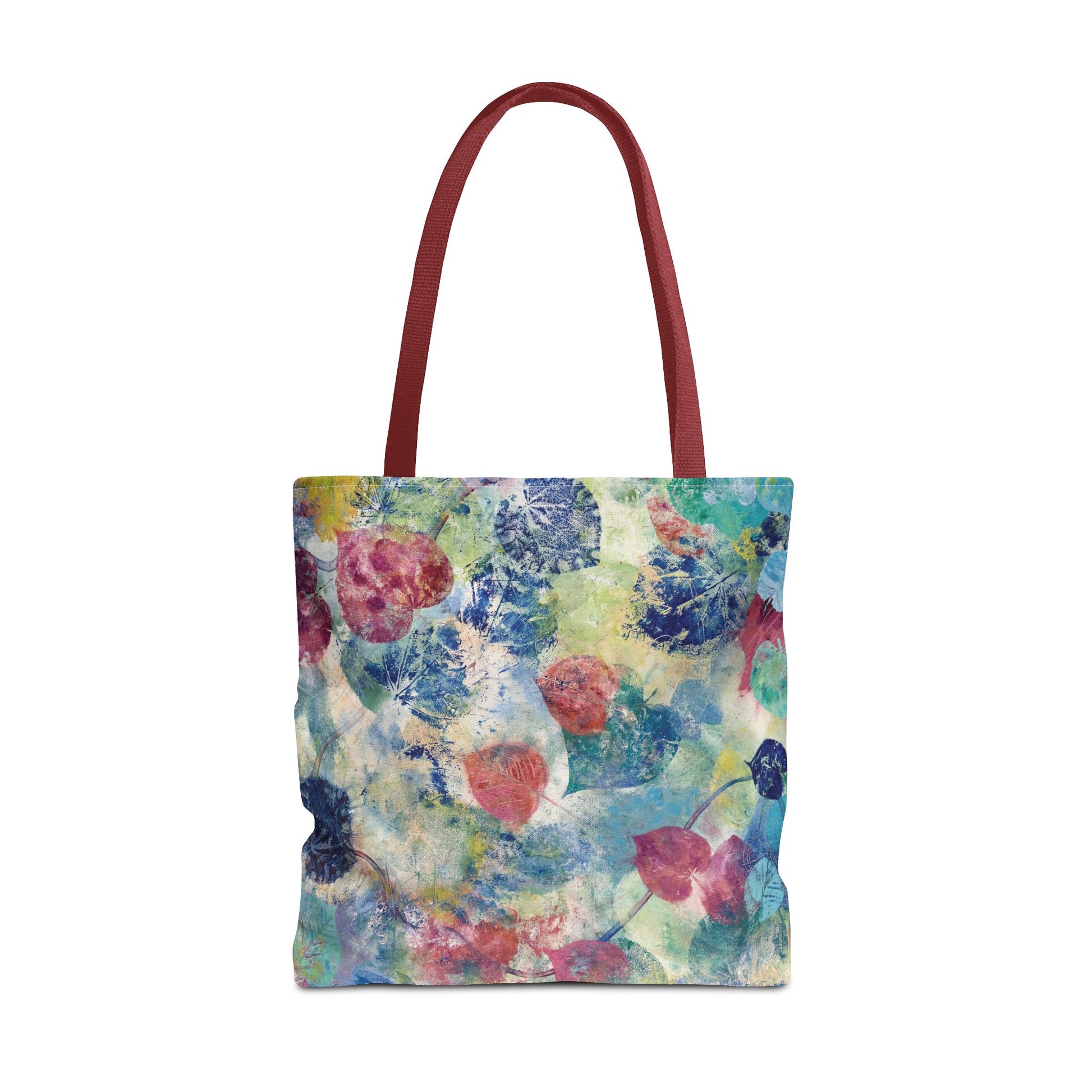 Leaf Print Nature Art Tote Bag Canvas Shopping Bag - Red Bud by Leslie Karpinski