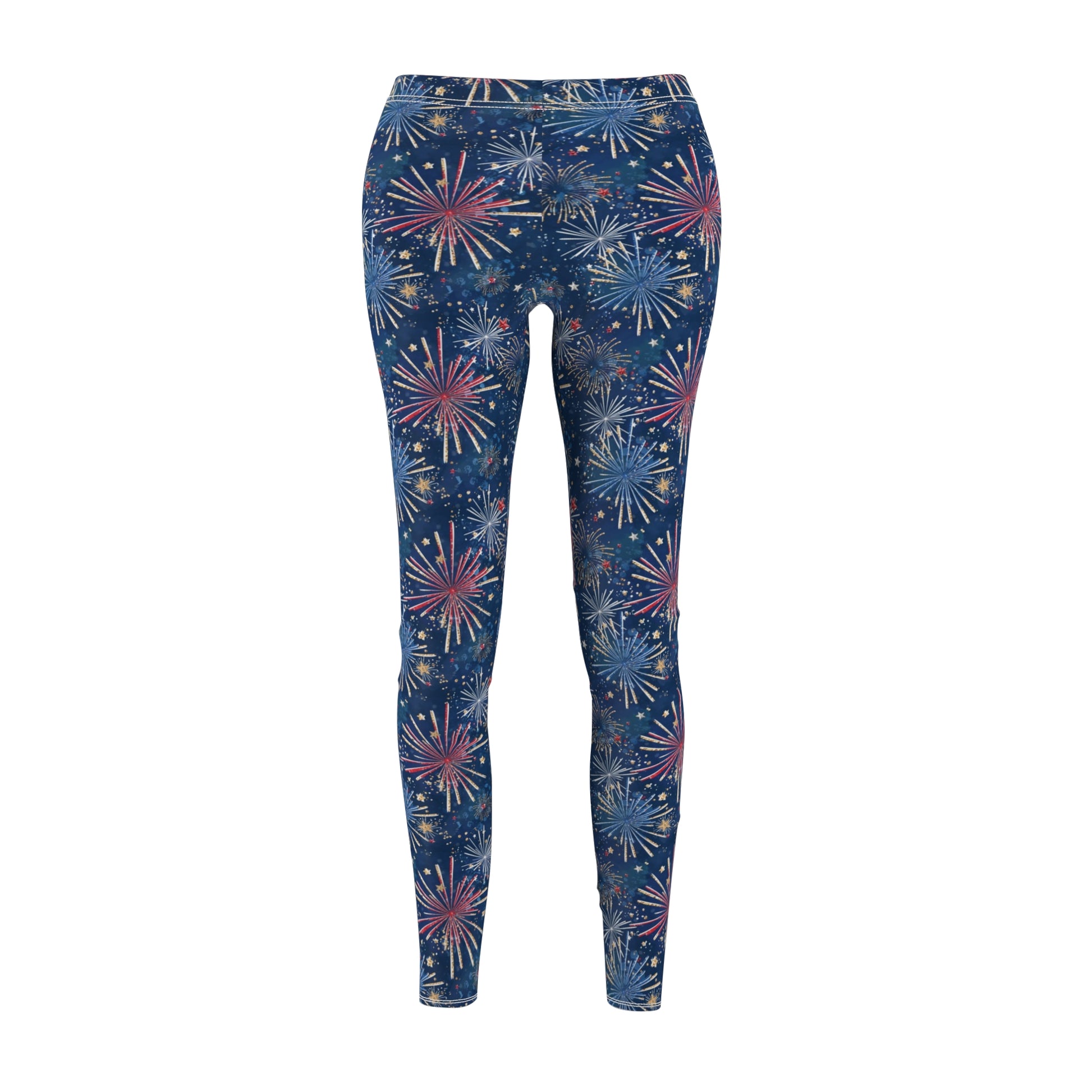Red White Blue Fireworks 4th of July Womens Leggings - Saiko Studio