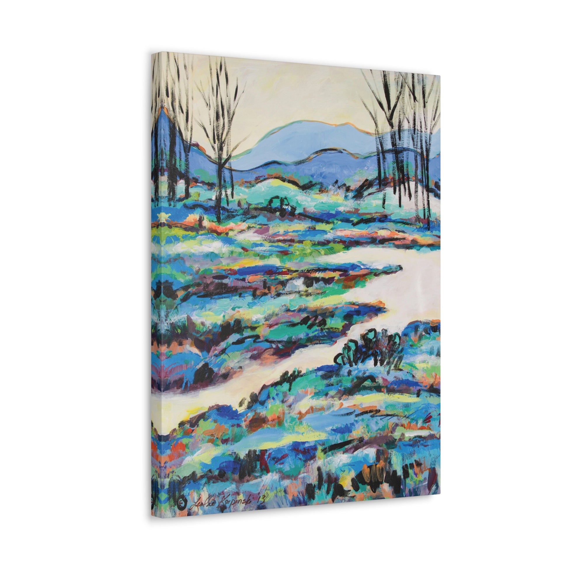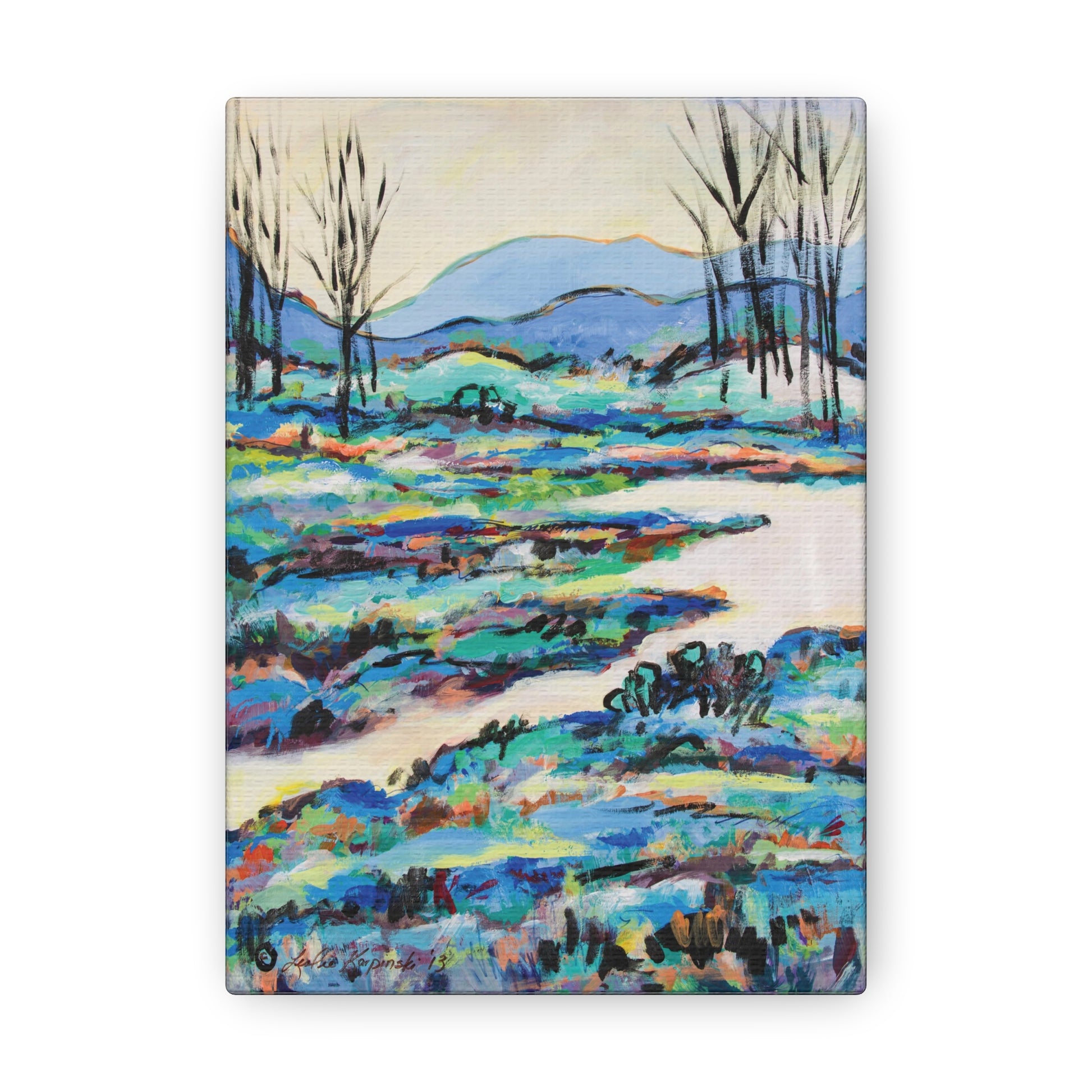 Leslie Karpinski is a North Carolina artist. When she was a kid, she loved climbing high into the big oak trees, painting large flowers while at school and designing gardens in the back of her family home. When she paints she produces artwork that conveys this message, there is great meaning to what she does in life and her the art.