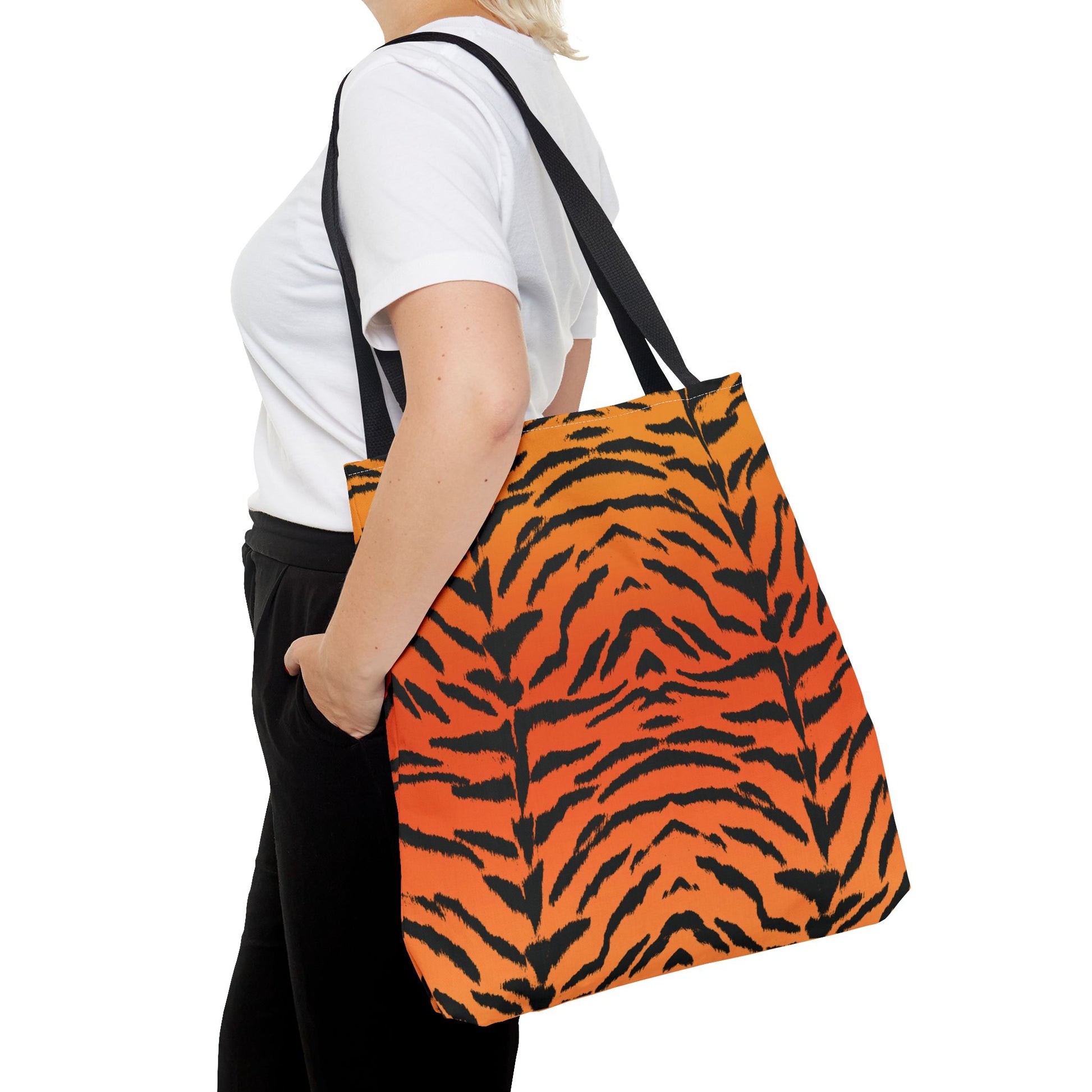 Our tiger print tote bag available in 3 sizes. We can personalize the bag.