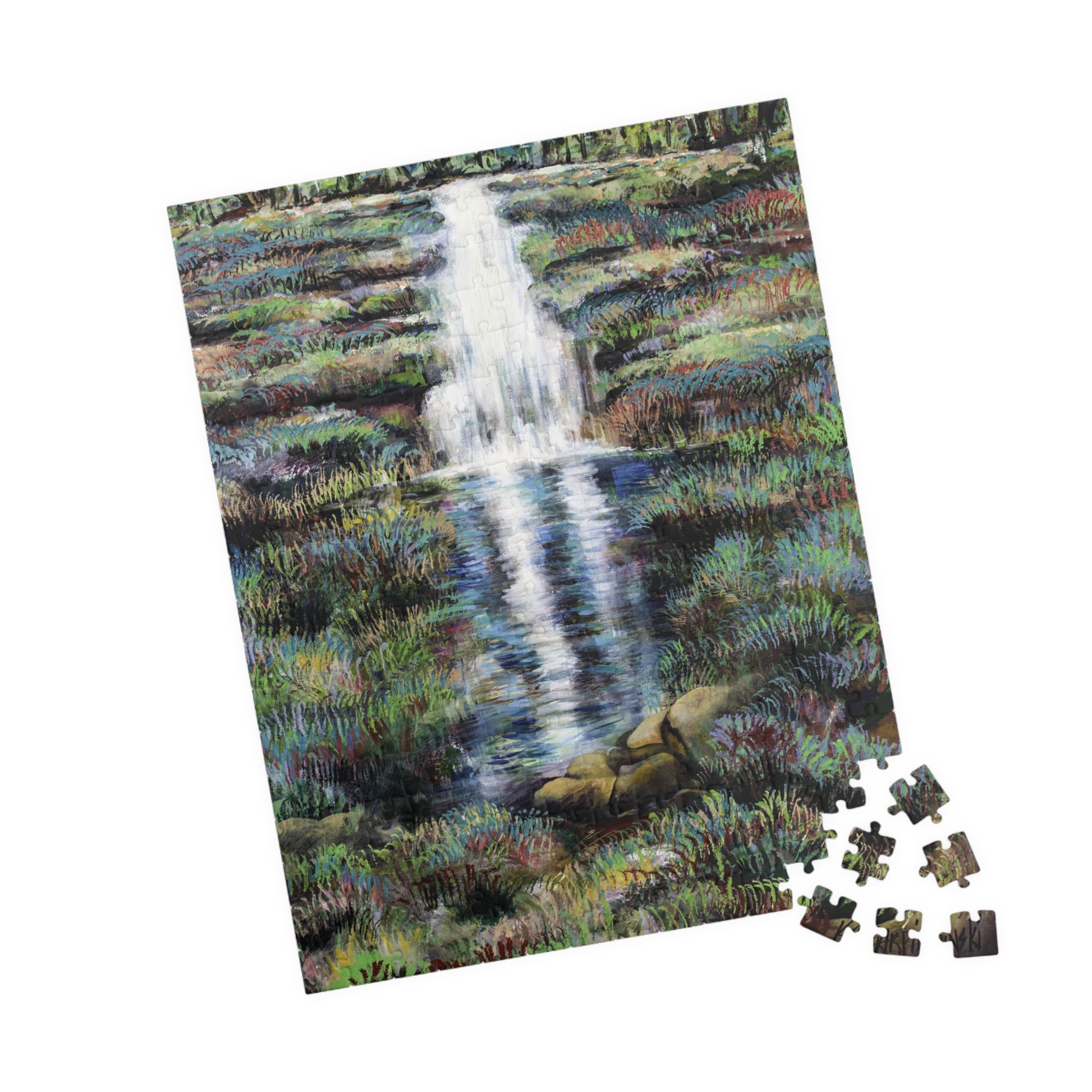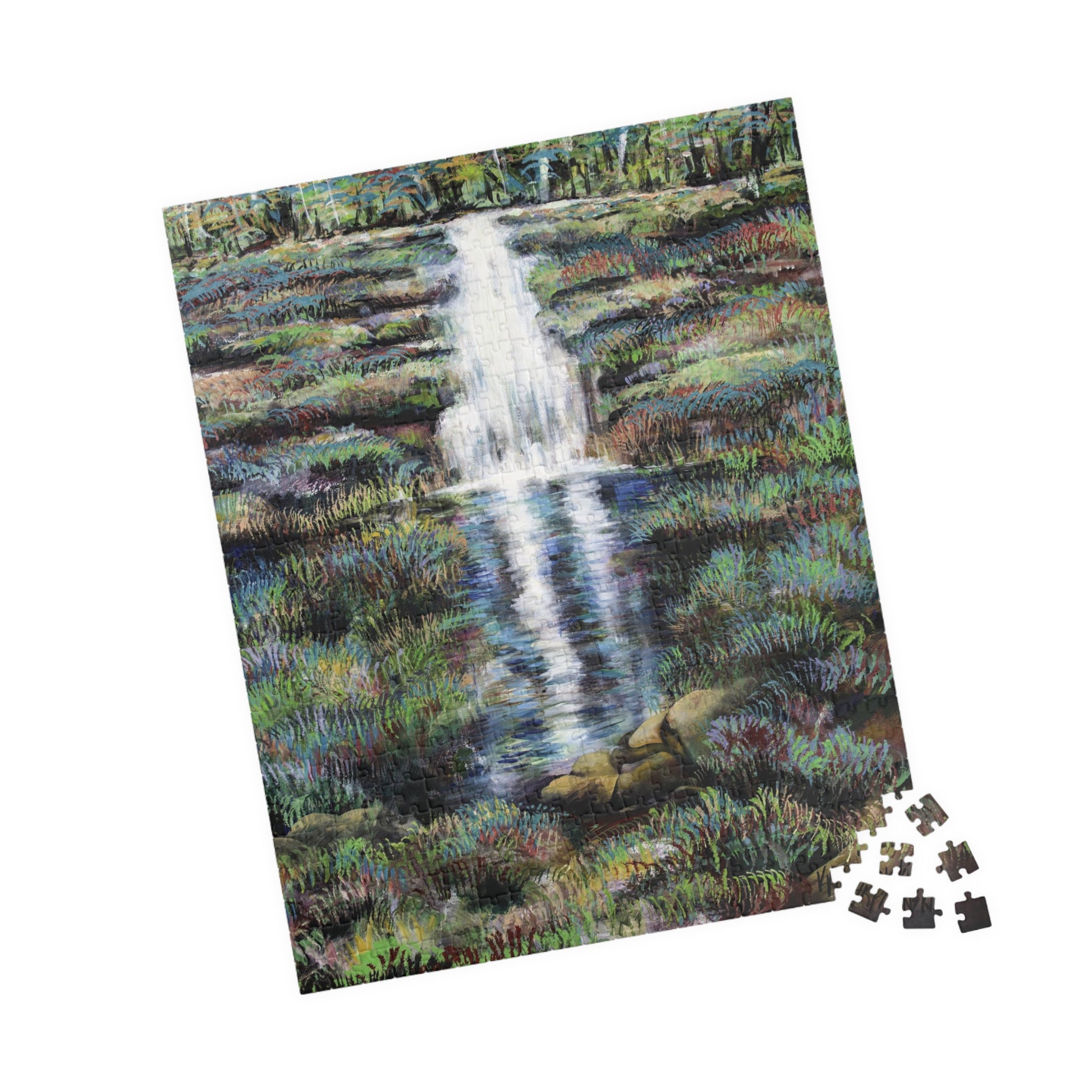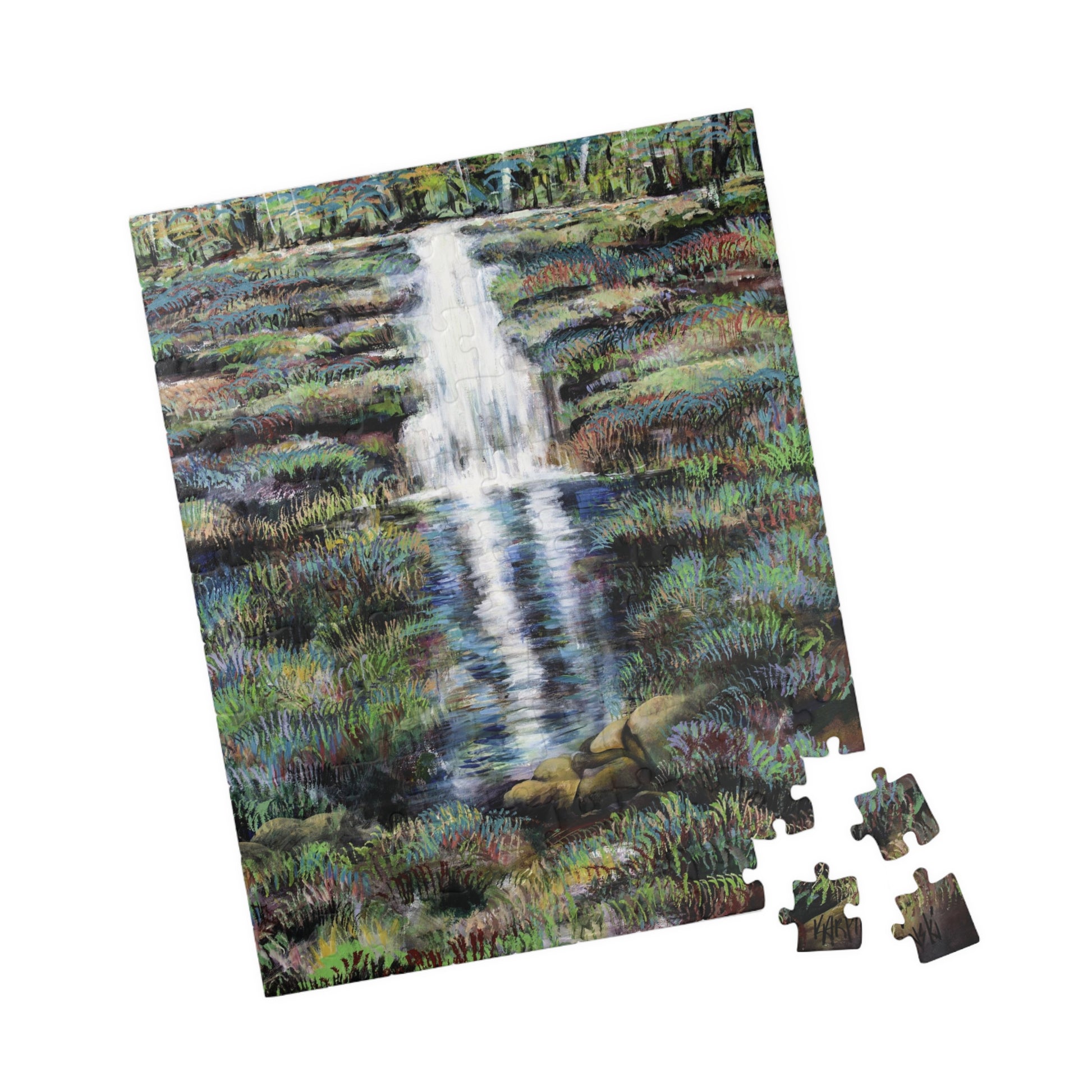 Our high quality artwork puzzle with a beautiful reproduction of a painting by Leslie Karpinski called "Waterfall".